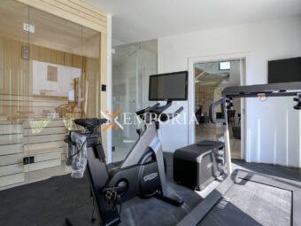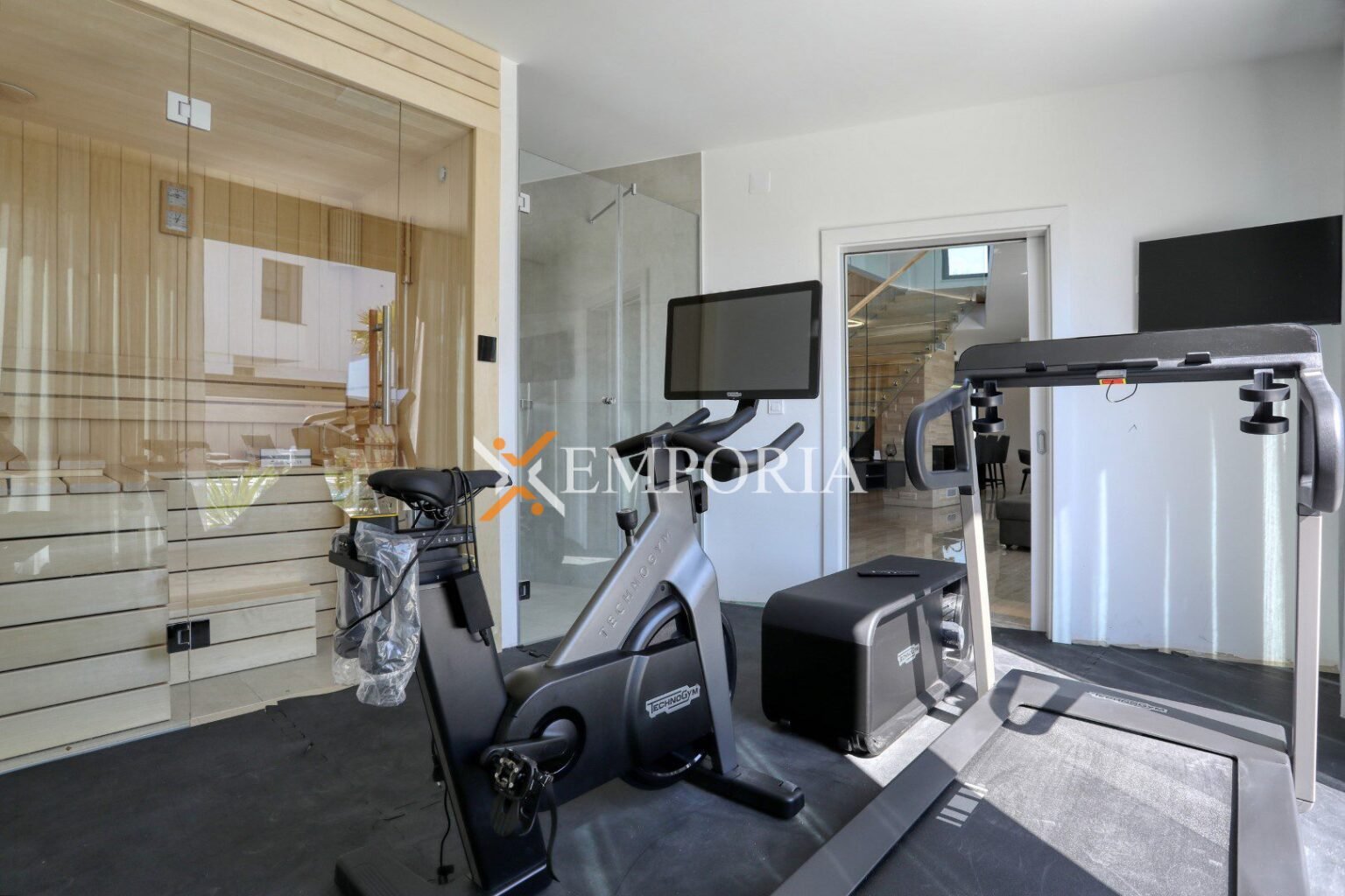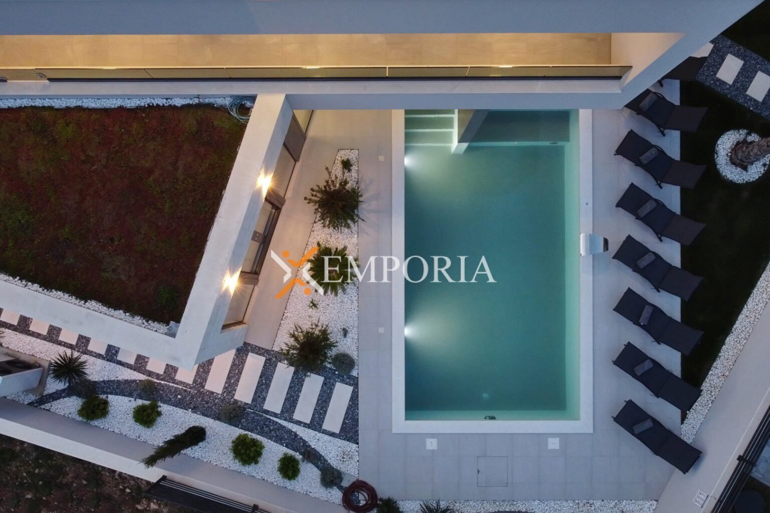 Kuća se sastoji od prizemlja i prvog kata. Prizemlje čine hodnik, wc, praonica, spa prostor, teretana, kuhinja s blagovaonicom i dnevnim boravkom te natkrivena terasa. Terasu prizemlja krasi bazen površine 30 m2. Nadalje, unutarnje stepenice vode na prvi kat gdje se nalaze hodnik, četiri spavaće sobe svaka s vlastitom kupaonicom te lođa.