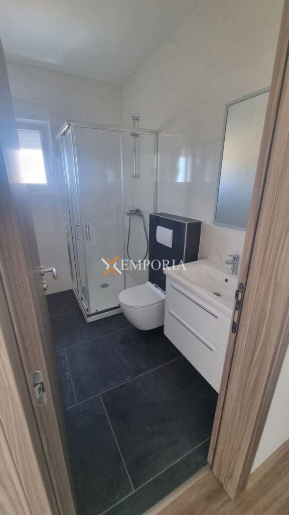 Gradnja je izvedena ciglenim termo blokom. Fasada je obložena stiroporom debljine 10 cm. Prozori su PVC s roletama i komarnicima. Podne obloge su pločice. Grijanje je podno u dnevnom boravku, kuhinji i blagovaonici, dok će u kupaonicama biti grijalice iznad vrata. Klima uređaji su postavljeni u dnevnom boravku i sobama.
