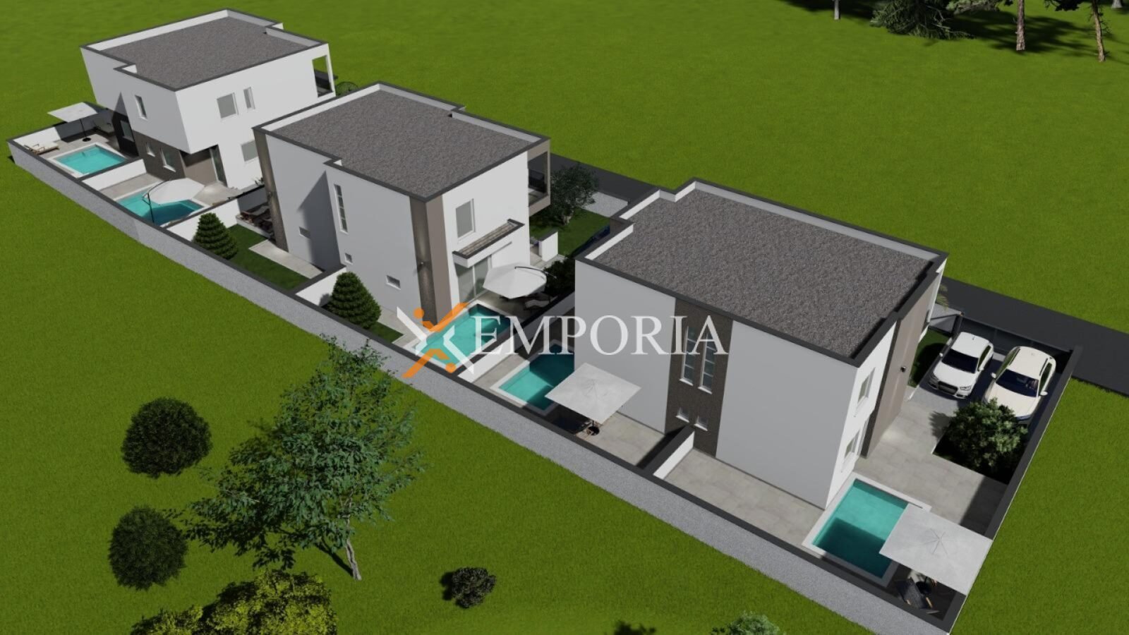 Prodaje se dvojna kuća s bazenom u Poličniku. Radi se o modernoj novogradnji.