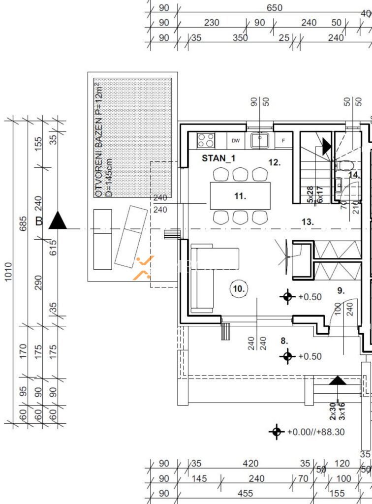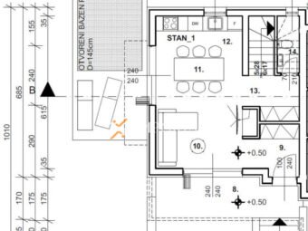 Osim toga, kući pripada vrt od 30 m2, bazen od 12 m2 i jedno vanjsko parkirališno mjesto.
