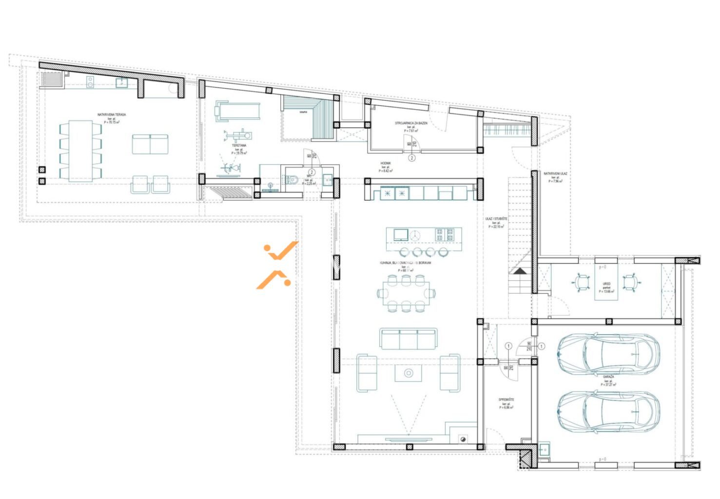 Vila se nalazi na parceli od 877 m² i uključuje pažljivo osmišljen i udoban interijer, dvostruku garažu, veliku terasu i infinity bazen, čineći ukupnu površinu od 529,48 m².