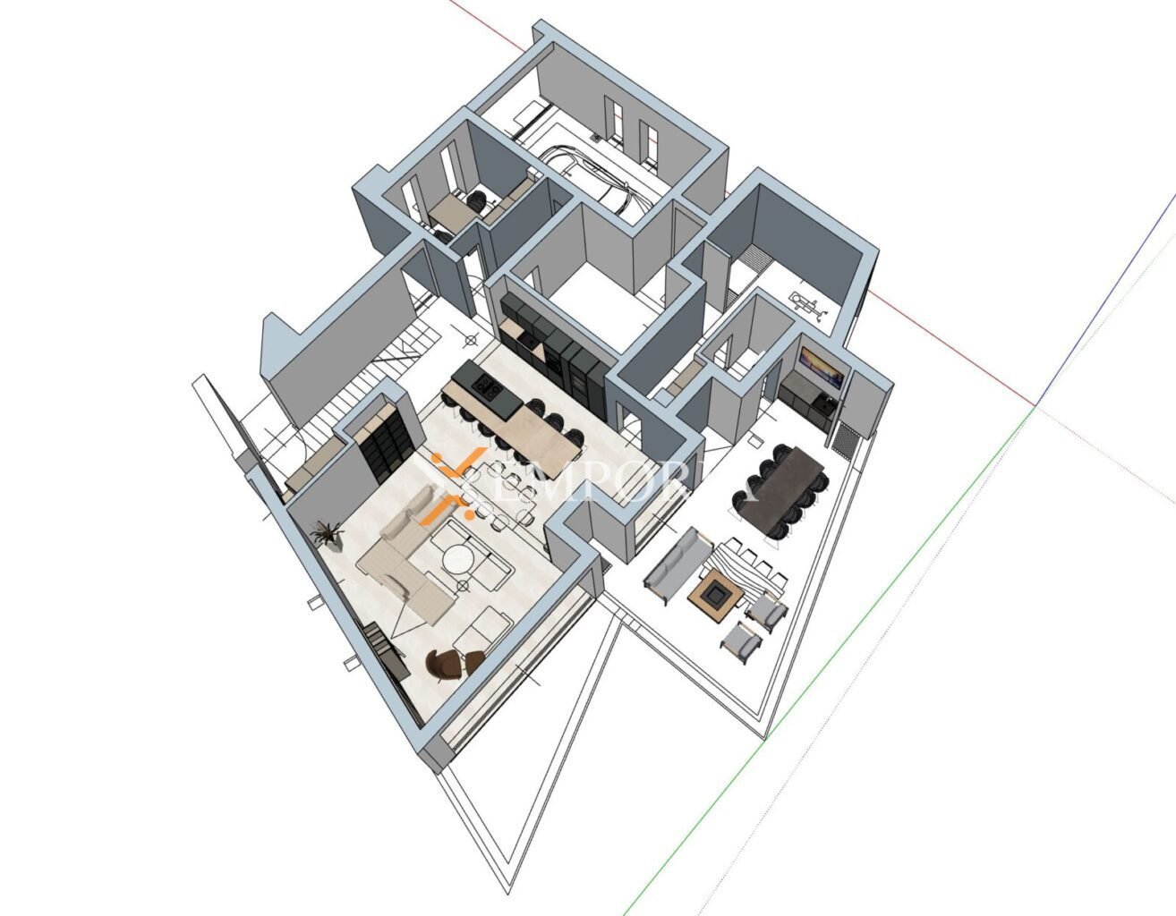 Vila se nalazi na parceli od 836 m² i uključuje pažljivo osmišljen i udoban interijer, garažu, veliku terasu i infinity bazen, čineći ukupnu površinu od 430,74 m².