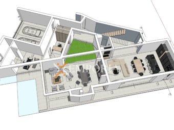 Na otvorenom prostoru nalazi se nenatkrivena terasa idealna za odmor i elegantan preljevni bazen. Površina nenatkrivene terase je 76,40 m², dok bazen zauzima površinu od 40,05 m².