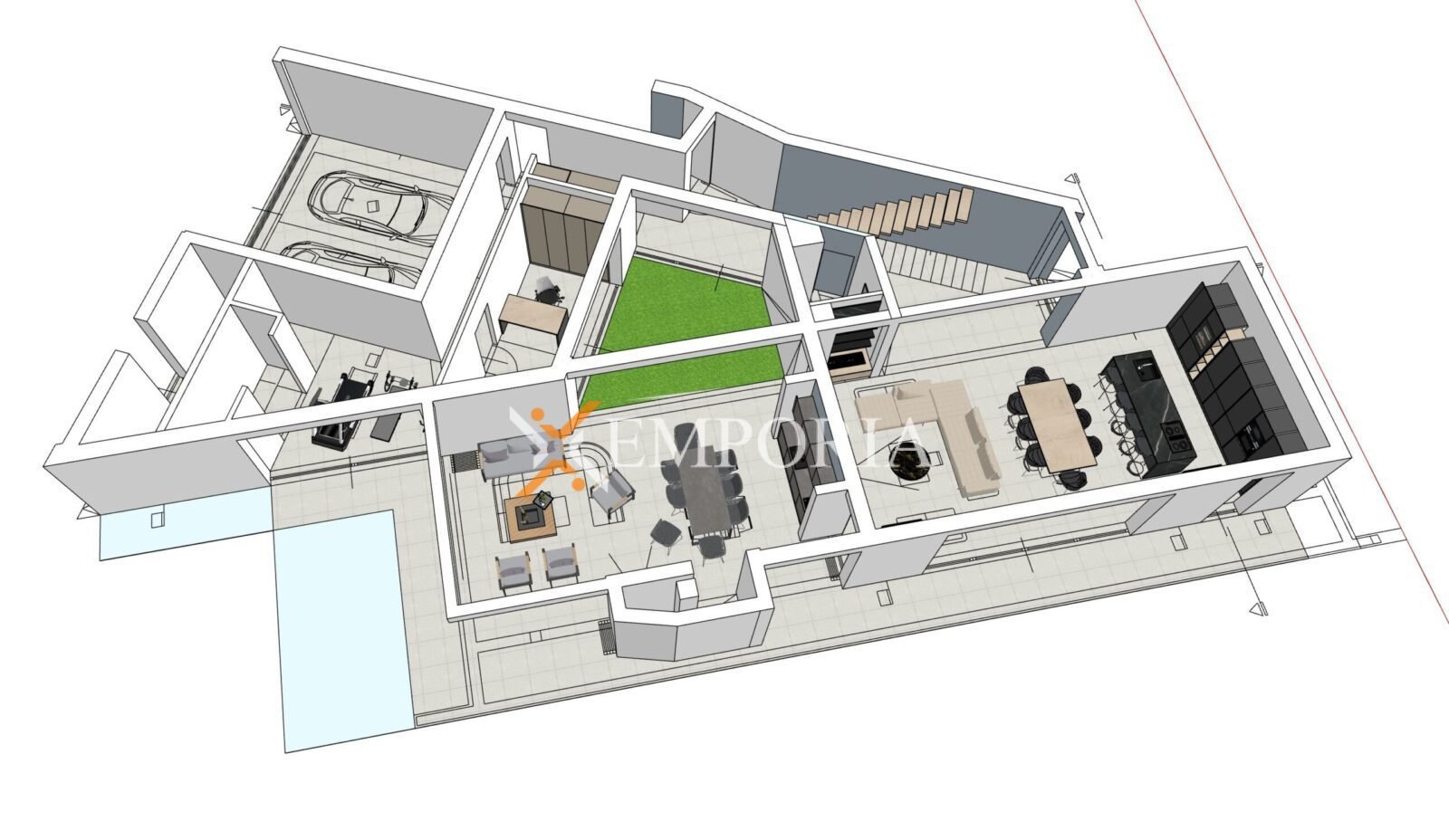 Vila se nalazi na parceli od 954 m² i uključuje pažljivo dizajniran i udoban interijer, dvostruku garažu, veliku terasu i infinity bazen, s ukupnom površinom od 517,37 m².