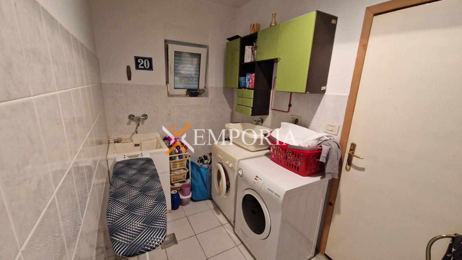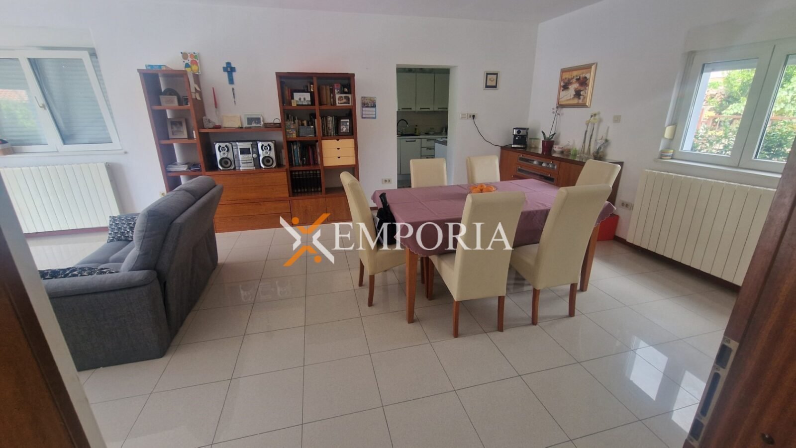 Dvorište je uređeno i ograđeno, s vanjskim roštiljem i dodatnim spremištem. Na raspolaganju je ukupno šest parkirnih mjesta – dva u garaži i četiri vanjska.
