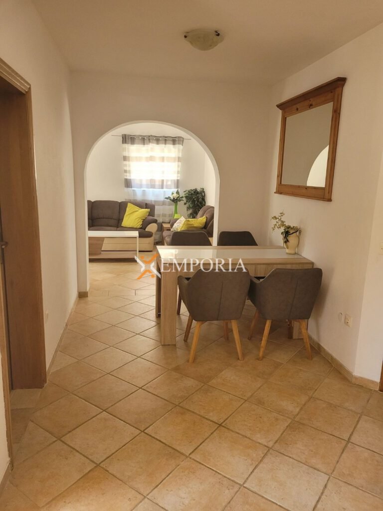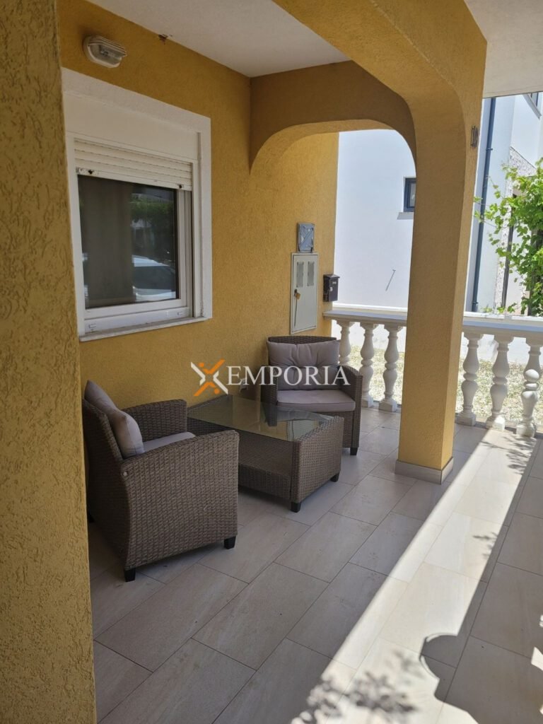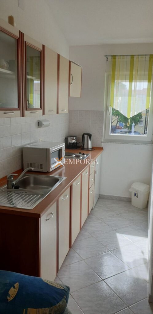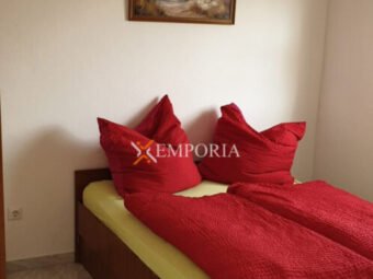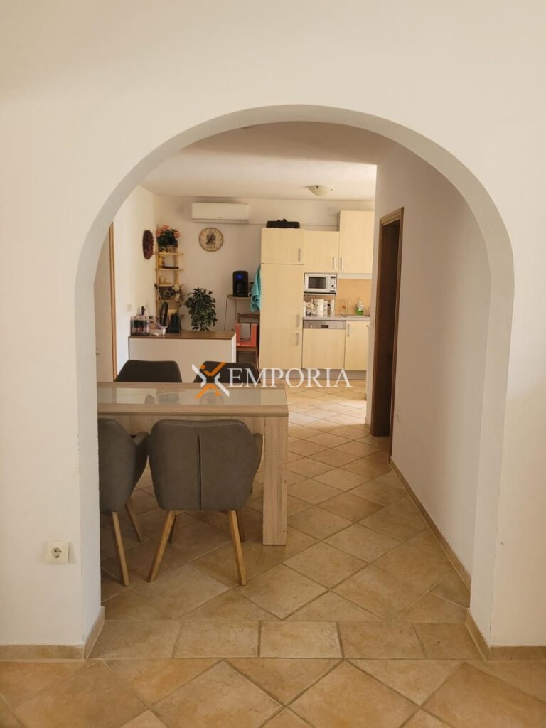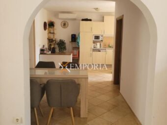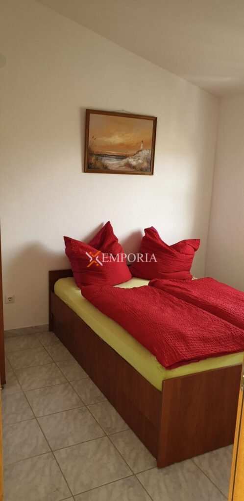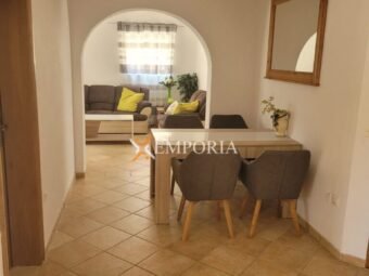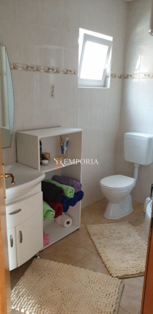 Kuća je namještena, ima tri klima uređaja (po jedan u svakom apartmanu) te električne grijalice za grijanje. Građena je 2006. godine od kvalitetnog ciglenog termo bloka. Prozori su PVC s roletama, a u spavaćim sobama su dodatno ugrađeni komarnici. Podovi su obloženi pločicama.