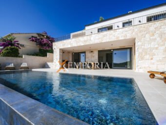 Na prodaju je luksuzna novogradnja s bazenom na Malom Ižu, udaljena svega 90 m od mora i 450 m od centra mjesta. Kuća je smještena na zemljištu površine 761 m², a ukupna površina interijera i eksterijera iznosi 294,27 m². Posebnu vrijednost ovoj nekretnini daje veliki preljevni bazen od 31,85 m² s grijanjem, te prekrasan i otvoren pogled na more. Neposredno ispod kuće prostire se vrt površine približno 400 m².