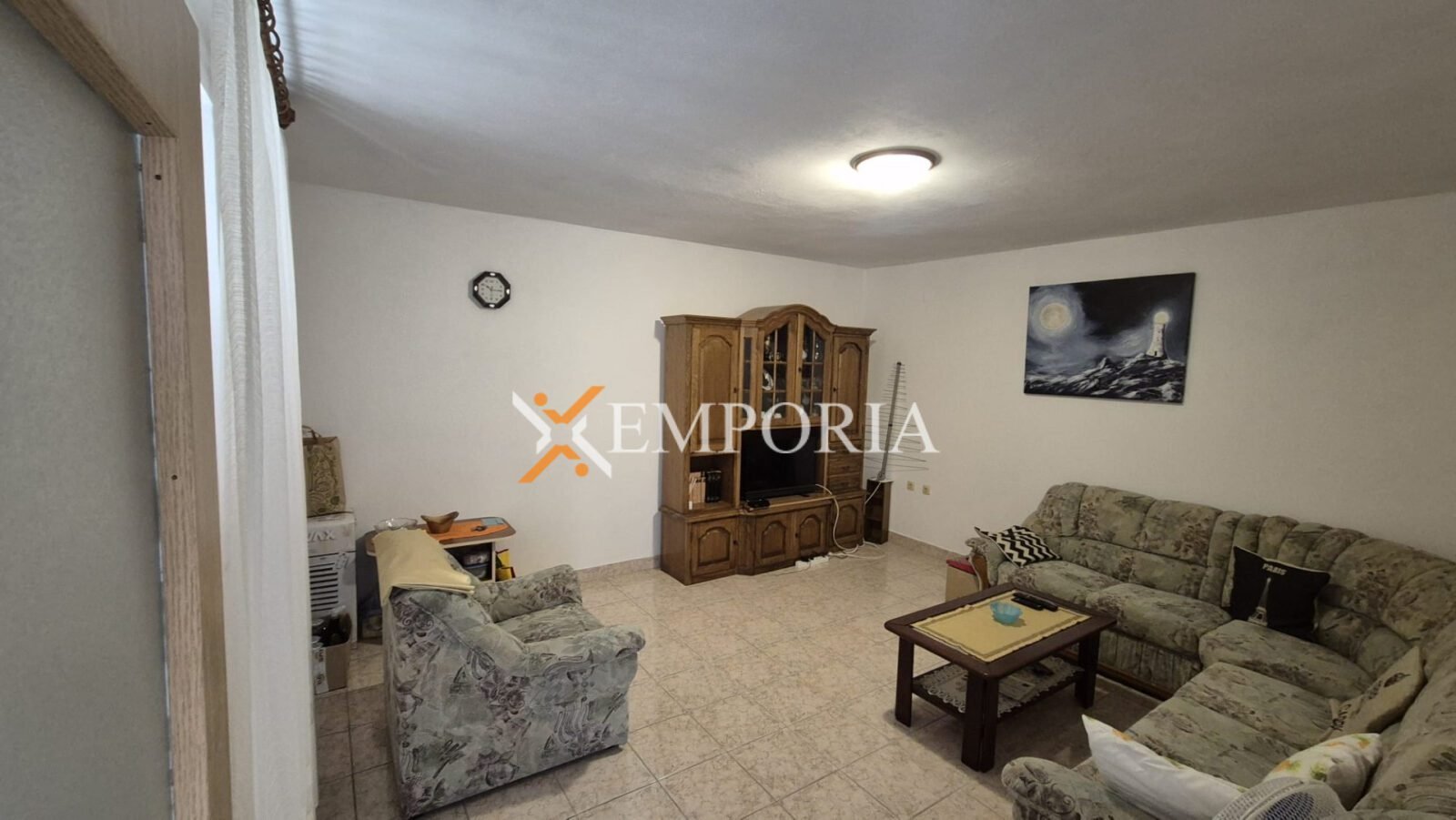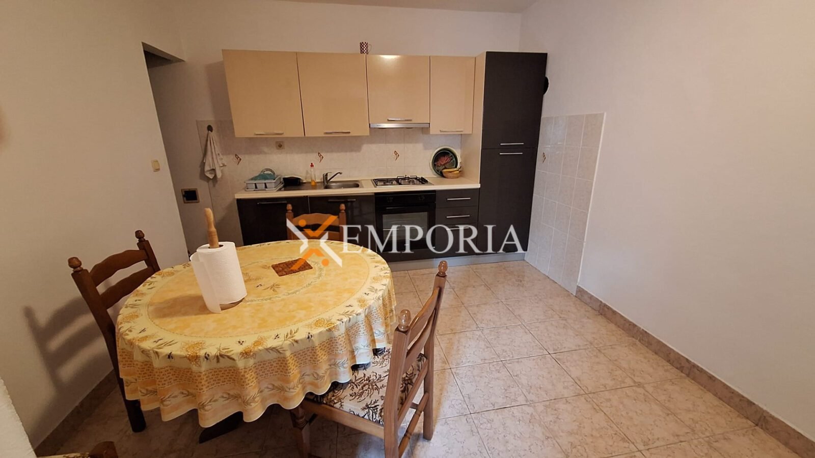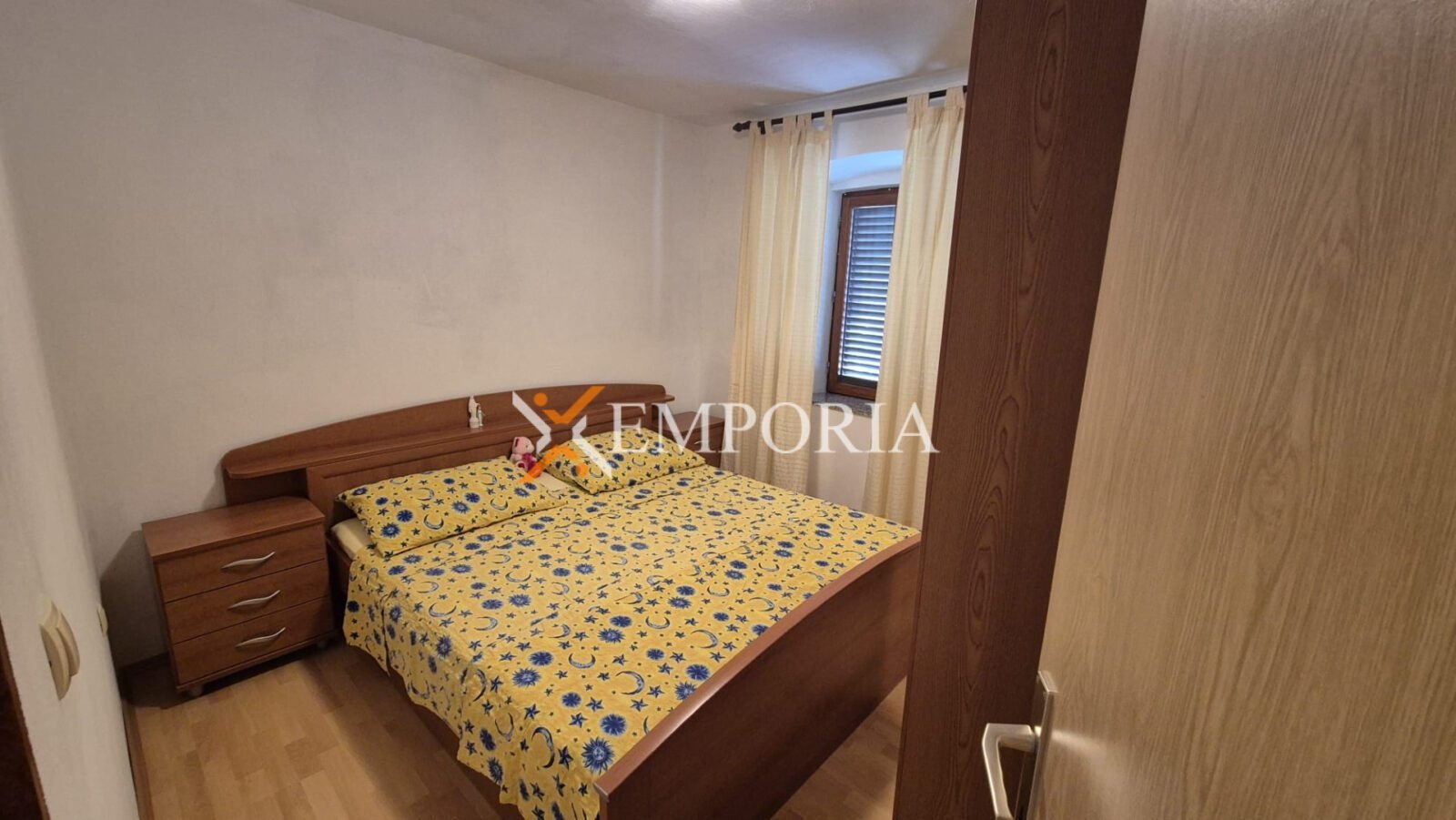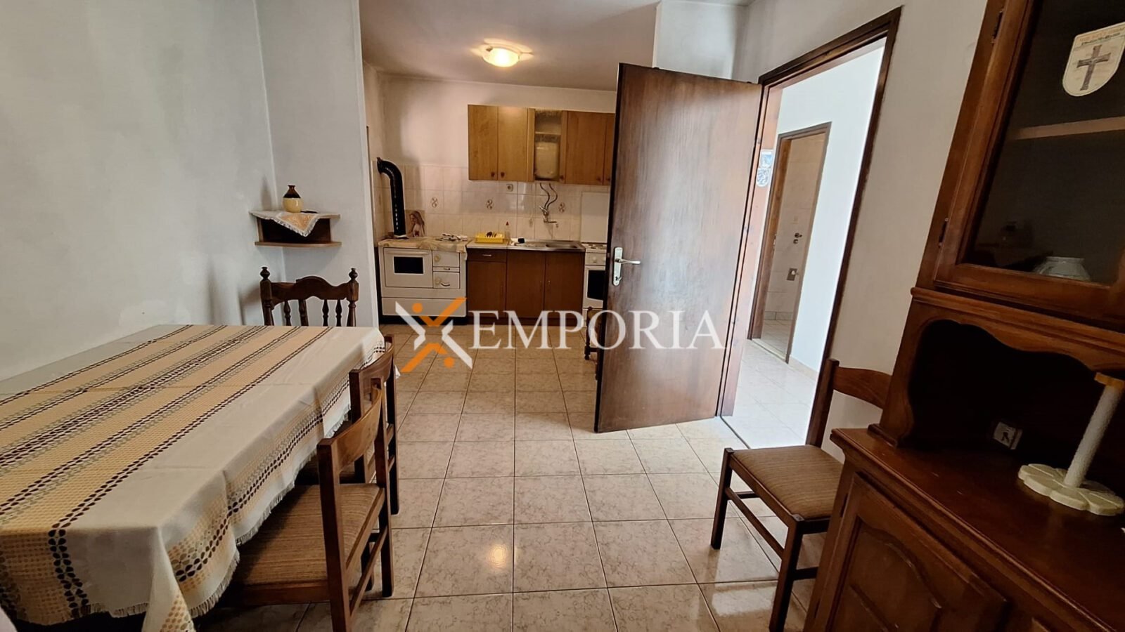 Nekretnina se prodaje s namještajem. Prozori su drveni, opremljeni griljama, dok su podovi izvedeni u kombinaciji pločica i laminata.