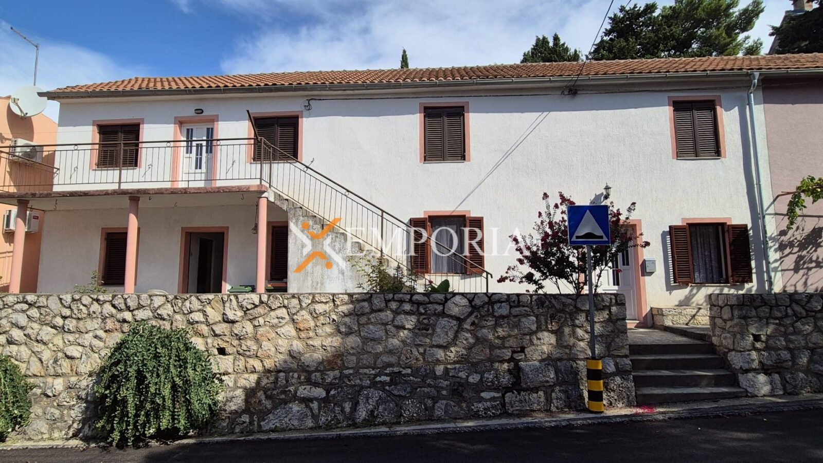 Desna strana prizemlja uključuje kuhinju, odvojeni dnevni boravak i stepenice koje vode na kat s dvije spavaće sobe, svaka s vlastitom kupaonicom. Lijevi dio prizemlja obuhvaća tri prostorije u roh-bau stanju. Vanjske stepenice vode na kat gdje su smješteni kuhinja s manjim dnevnim boravkom, soba i kupaonica. Kući dodatnu vrijednost daju i dvije pomoćne zgrade u roh-bau stanju, koje nude mogućnost prenamjene prema vlastitim potrebama.