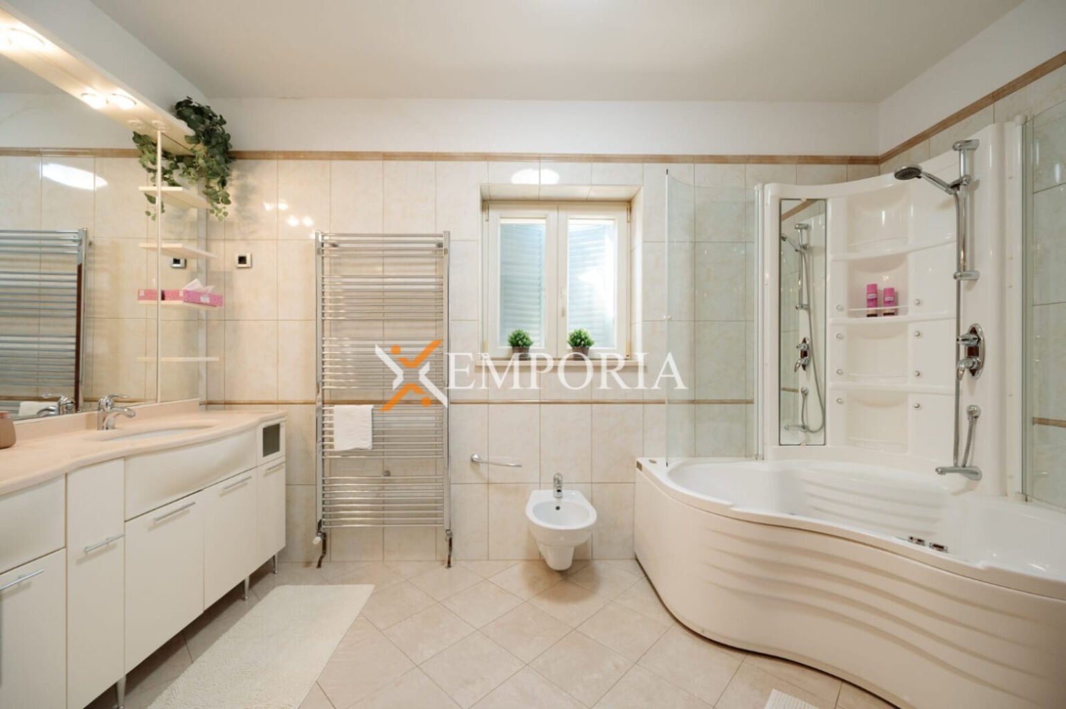 Kuća ima uređeni vrt, više spremišta i parkiranje za šest automobila – tri u garaži i tri ispred.