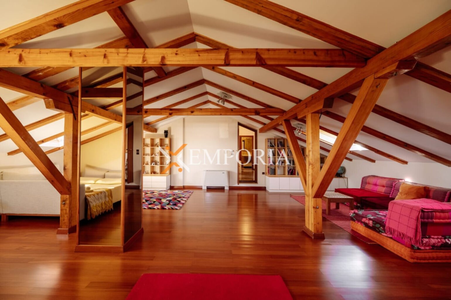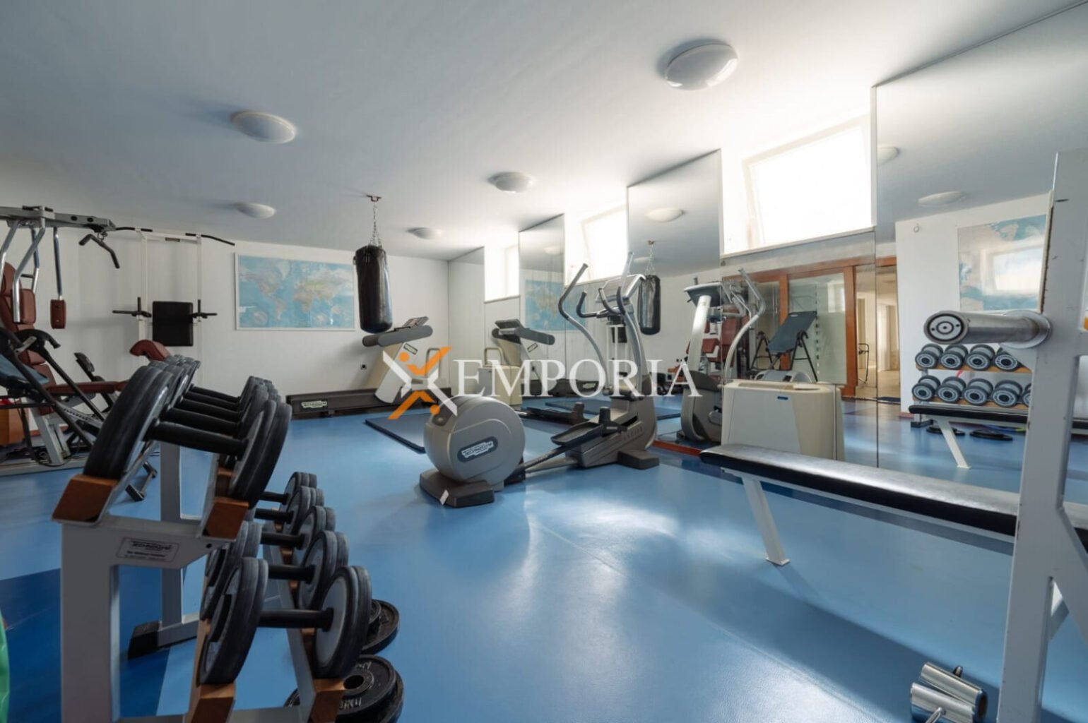 U podrumu se nalazi garaža za tri automobila, fitness prostor, kupaonica, tri spremišta i kotlovnica, ukupne površine 270,95 m². Prizemlje od 348,92 m² obuhvaća hodnik, dvije spavaće sobe s vlastitim kupaonicama, još dvije spavaće sobe, dodatnu kupaonicu, kuhinju s blagovaonicom i dnevnim boravkom, WC, ostavu te natkrivenu terasu. Unutarnje stepenice vode u potkrovlje od 190,21 m² gdje se nalaze hodnik, dvije spavaće sobe, kupaonica, spremište, velika prostorija koja može služiti kao dnevni boravak ili dodatna kuhinja, prostor predviđen kao igraonica, nenatkrivena terasa i lođa.