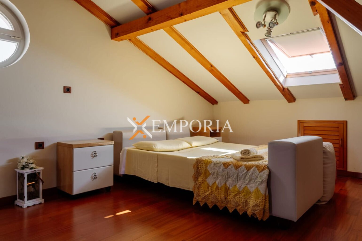 Dodatna vrijednost su solarni paneli za toplu vodu, kamin u dnevnom boravku, vanjski roštilj, vanjski tuš kod bazena, djelomično navodnjavanje vrta te veća travnata površina pogodna za uređenje teniskog igrališta. Krov je kosi, a kuća je građena 2003. godine.
