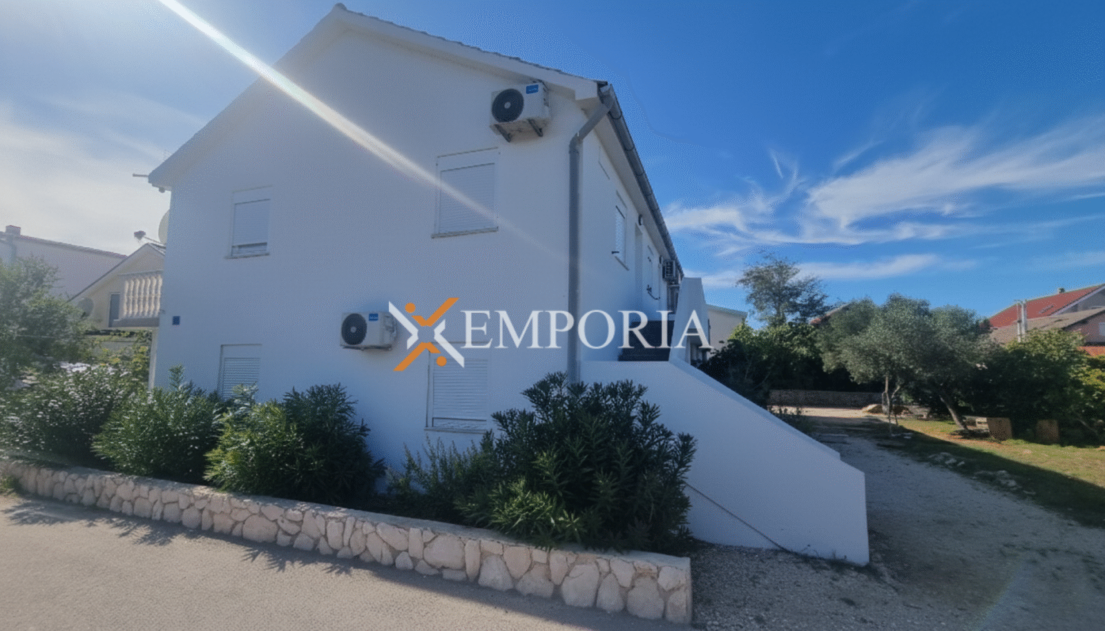 Na prodaju je istočni dio dvojne kuće u Viru, udaljen samo 260 m od mora i 1,6 km od centra mjesta. Kuća se nalazi na zemljištu površine 322 m², a ukupna stambena površina iznosi 178,39 m². Sastoji se od tri stambene jedinice raspoređene na prizemlje i potkrovlje.
