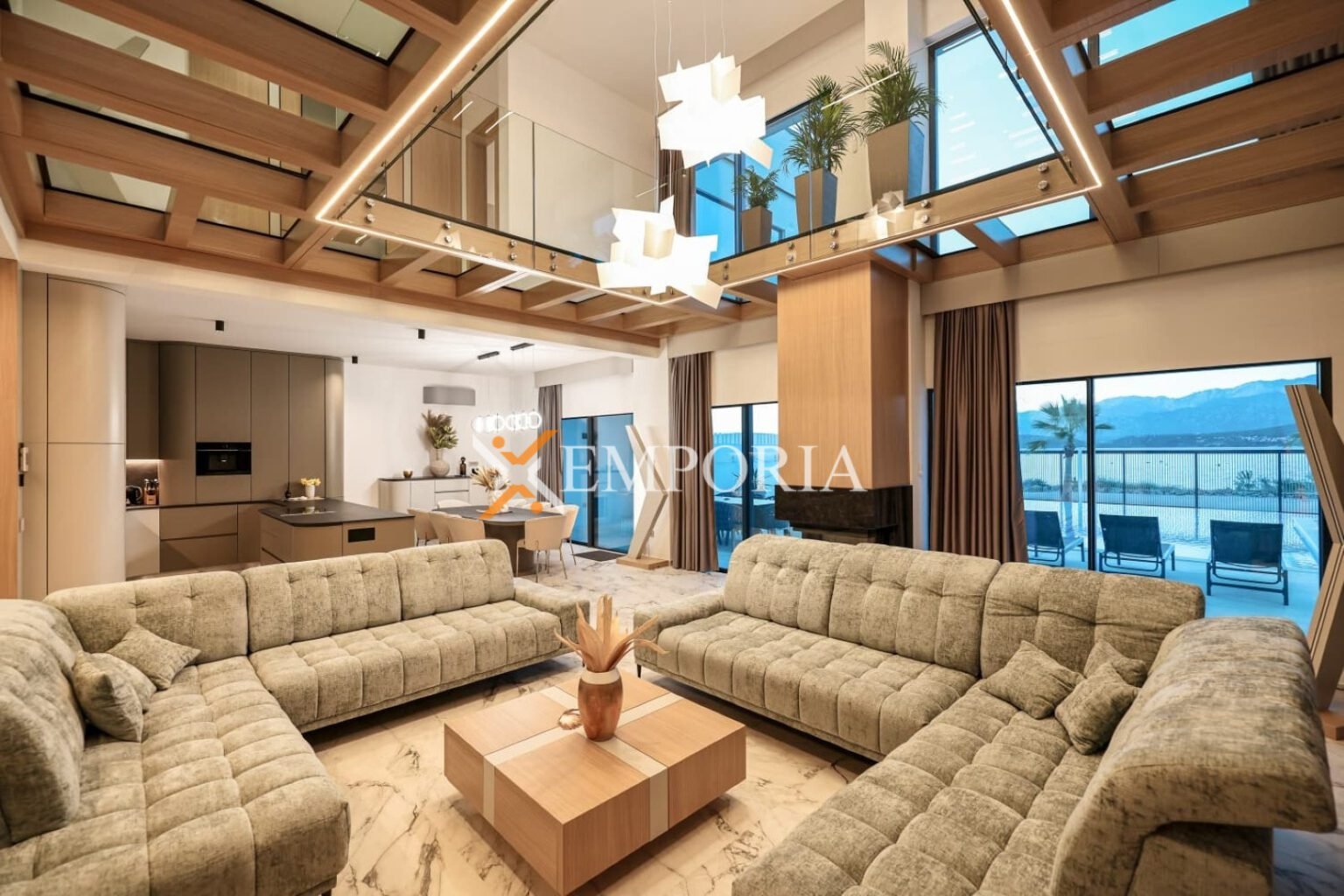 Na katu se nalaze galerija te četiri spavaće sobe, svaka sa svojom kupaonicom, kao i dvije terase i dvije natkrivene terase koje pružaju prekrasan panoramski pogled na more.