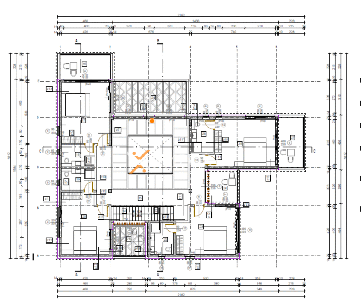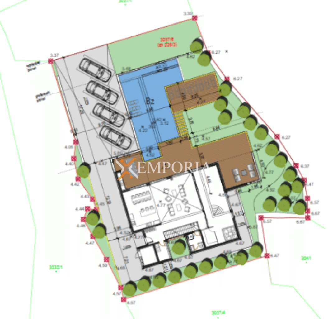 Ukupna neto površina vile iznosi 482,08 m², dok ukupna površina s bazenima doseže 554,08 m². Nalazi se na uređenoj parceli od 1.100 m², okruženoj borovima, palmama i maslinama.