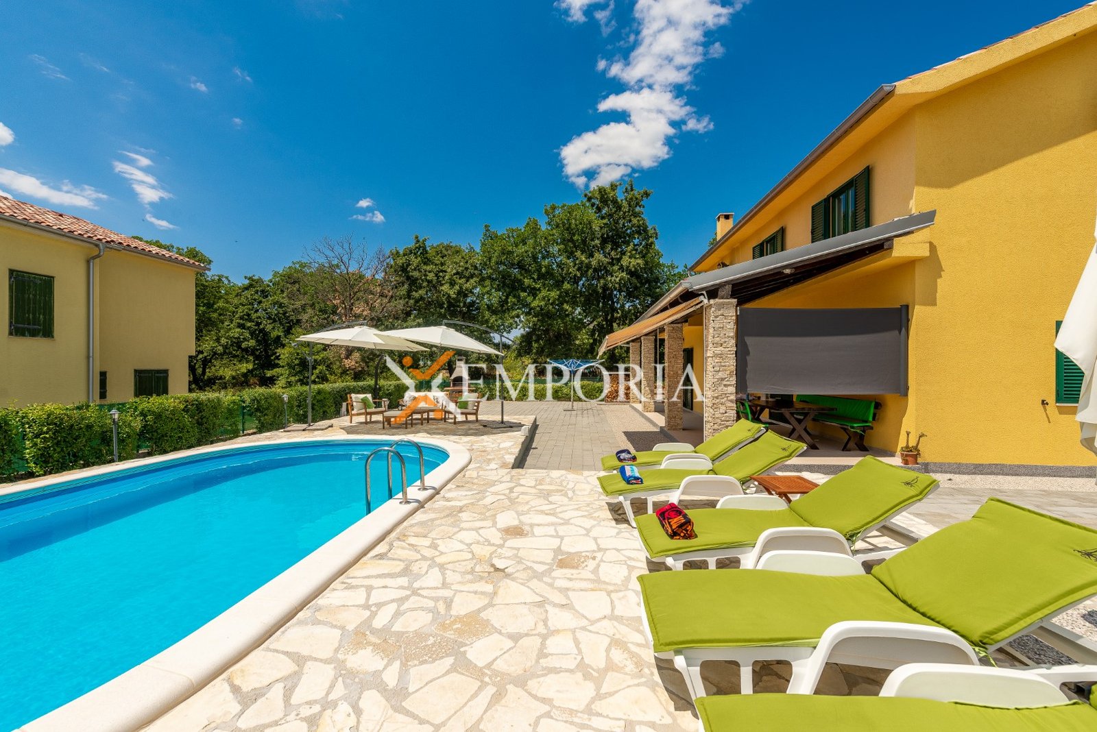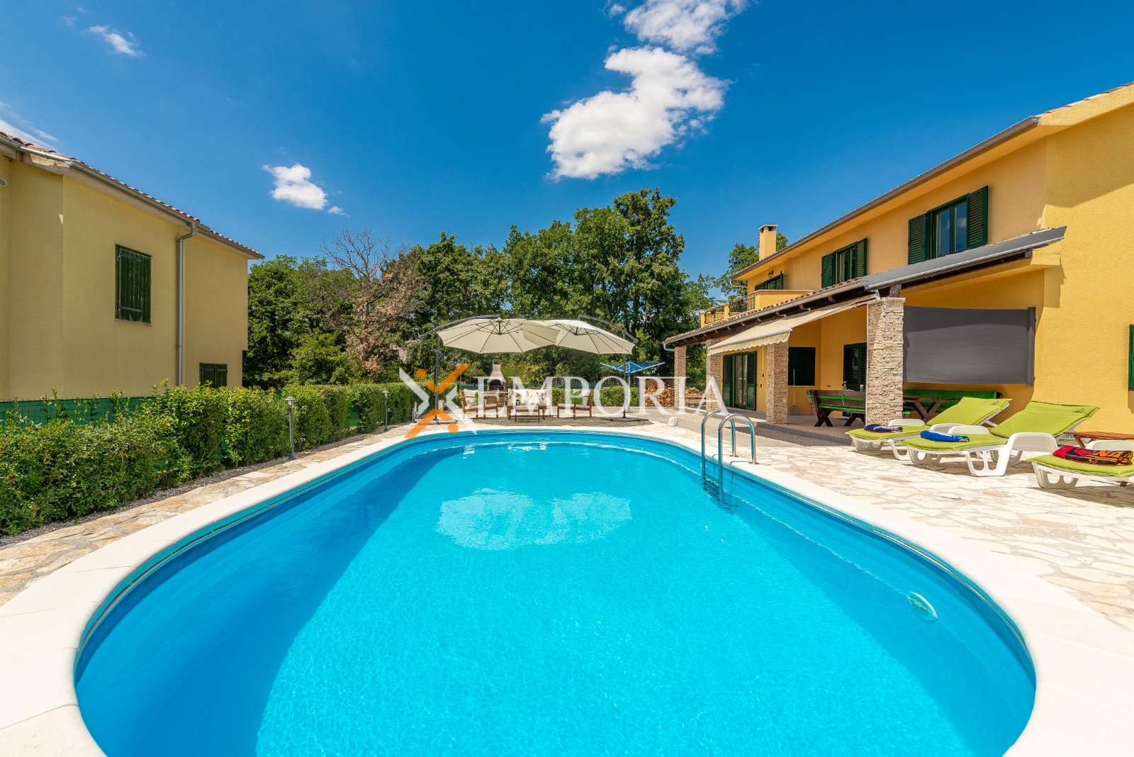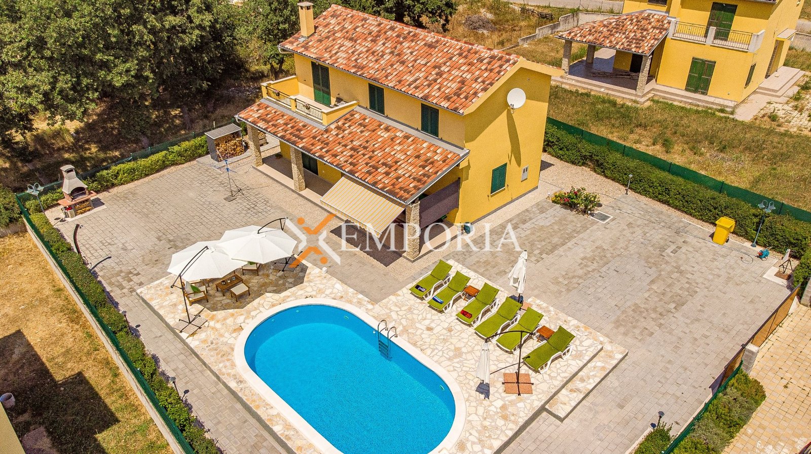 U sklopu okućnice nalazi se bazen od 32 m², prostrani vrt i roštilj. Osigurana su četiri parkirna mjesta.