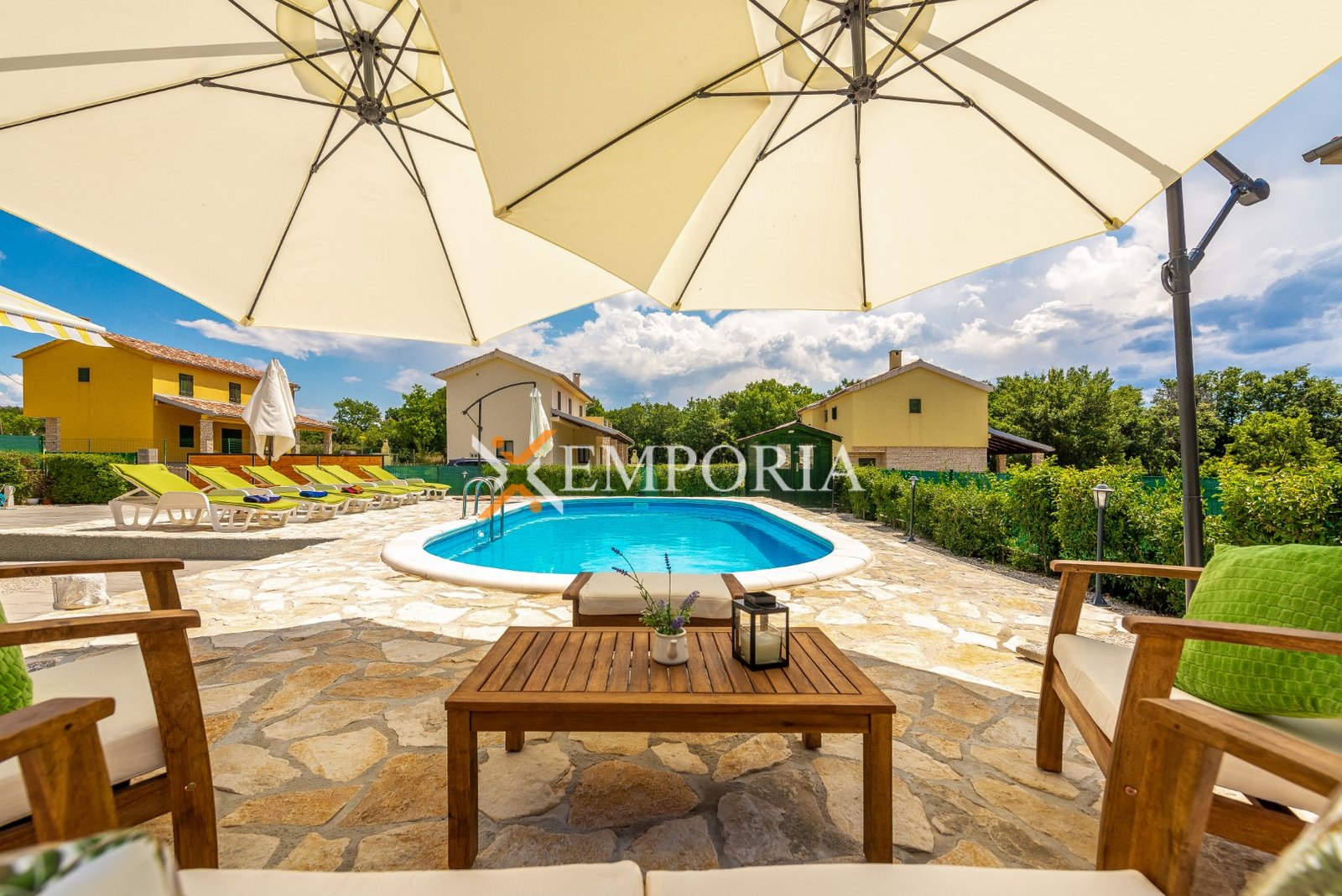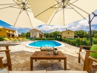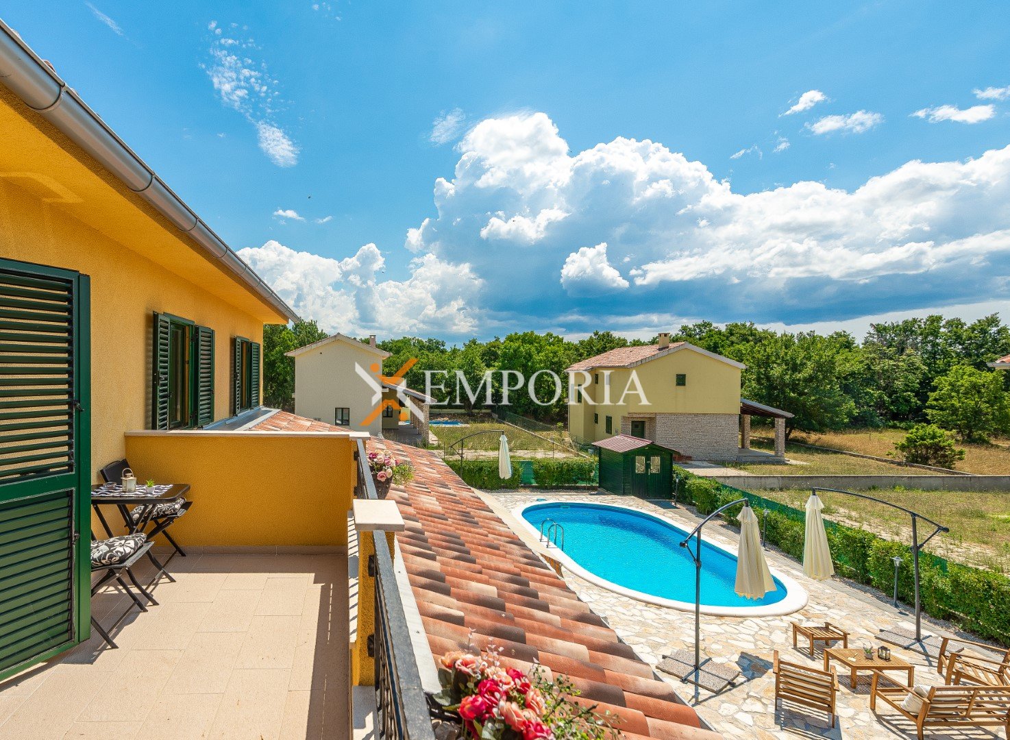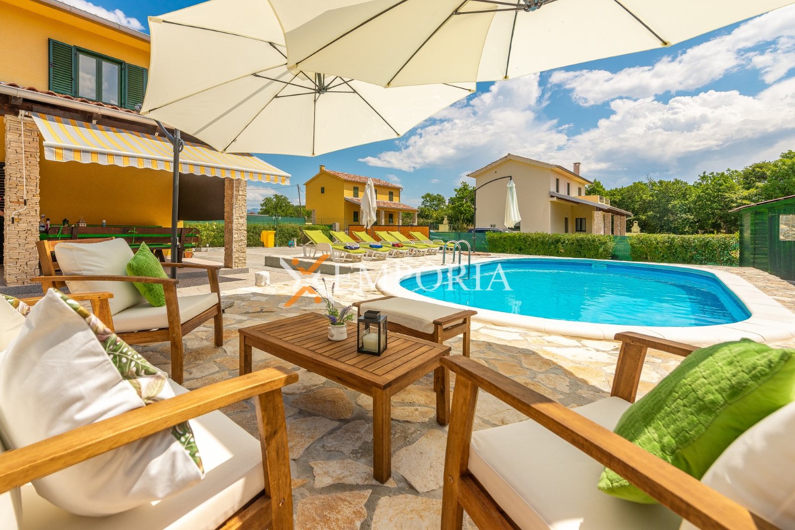 U sklopu okućnice nalazi se bazen od 32 m², prostrani vrt i roštilj. Osigurana su četiri parkirna mjesta.