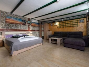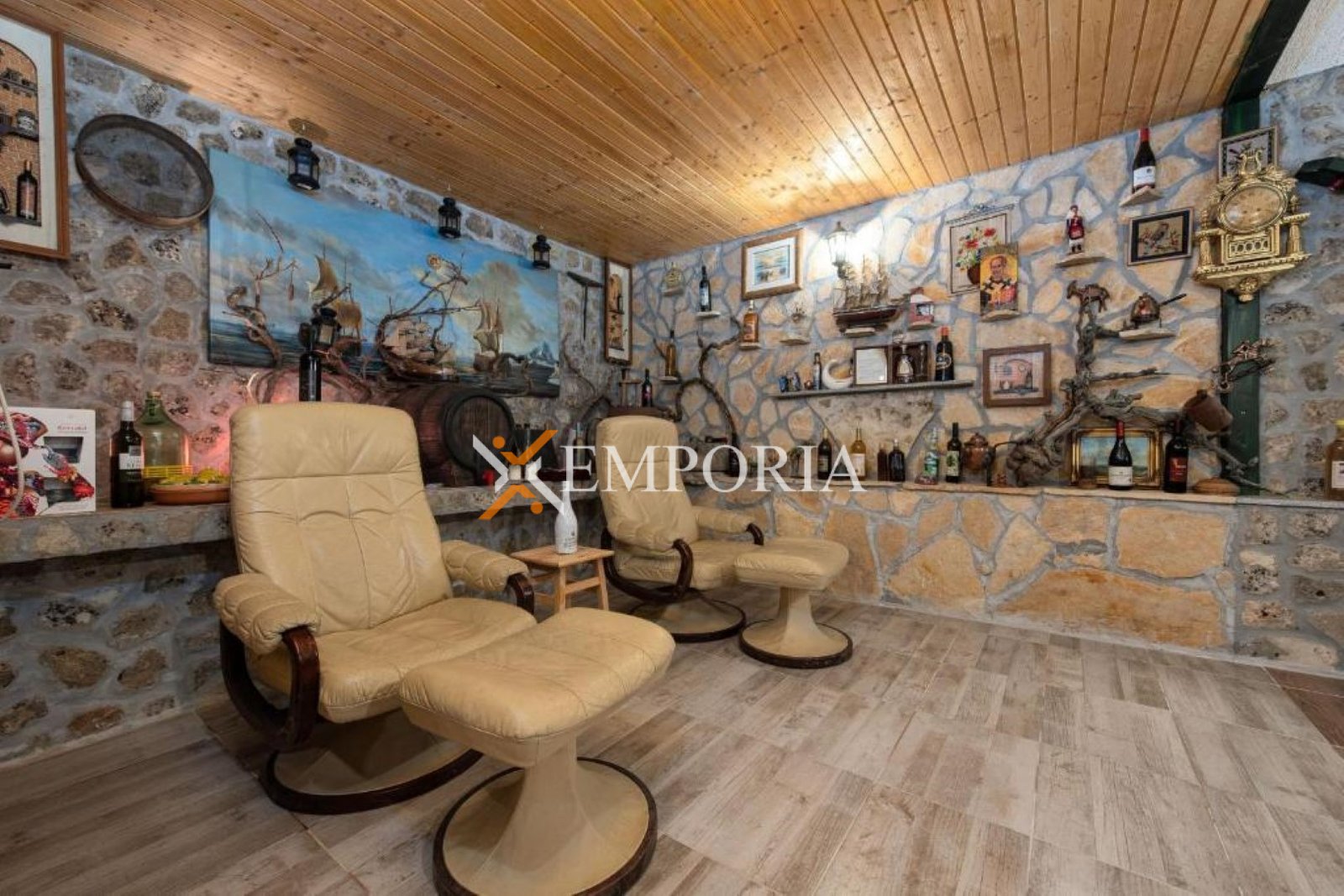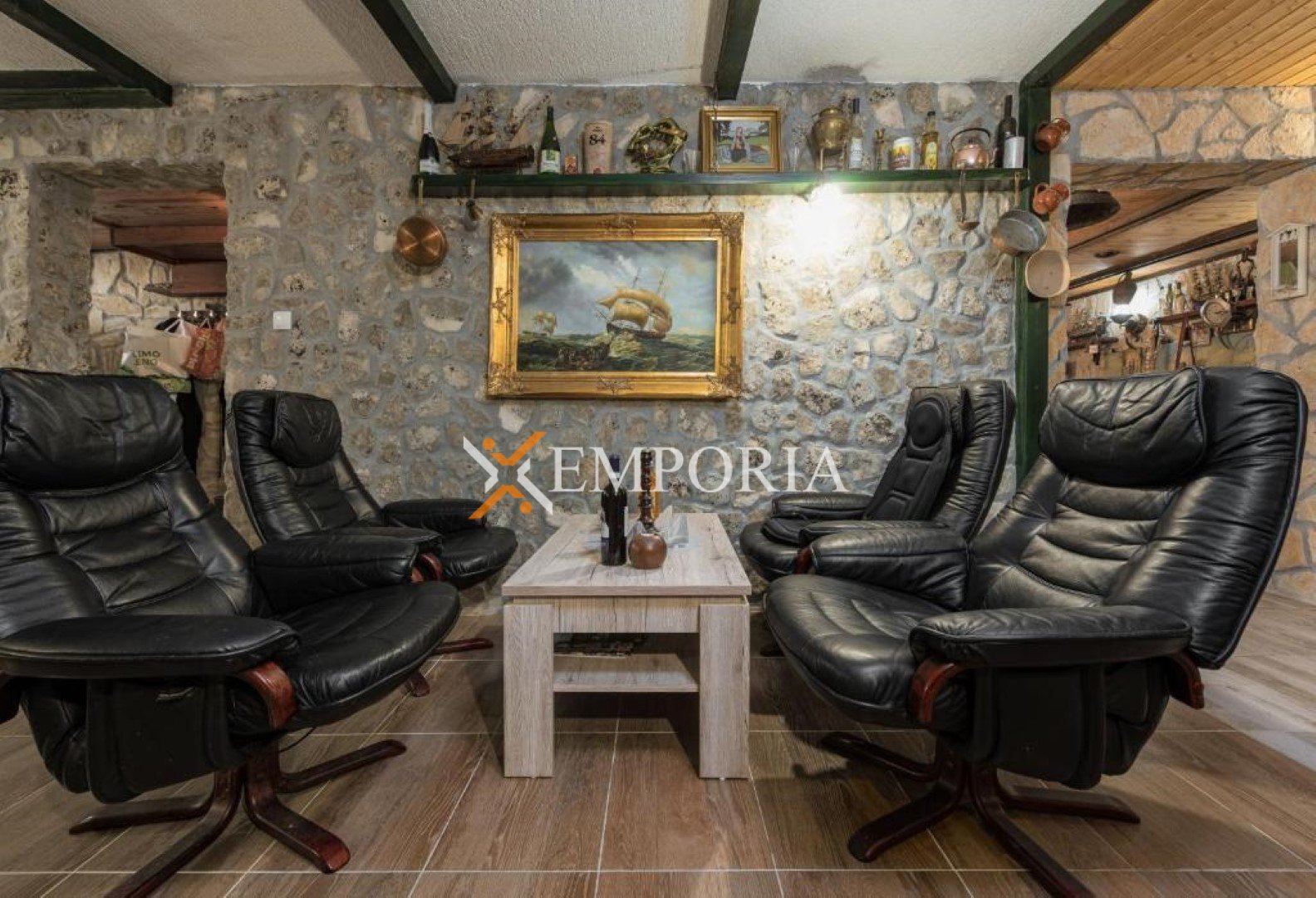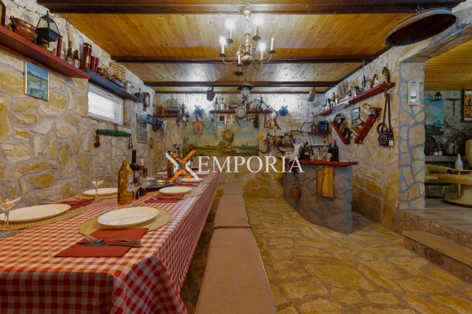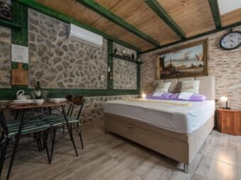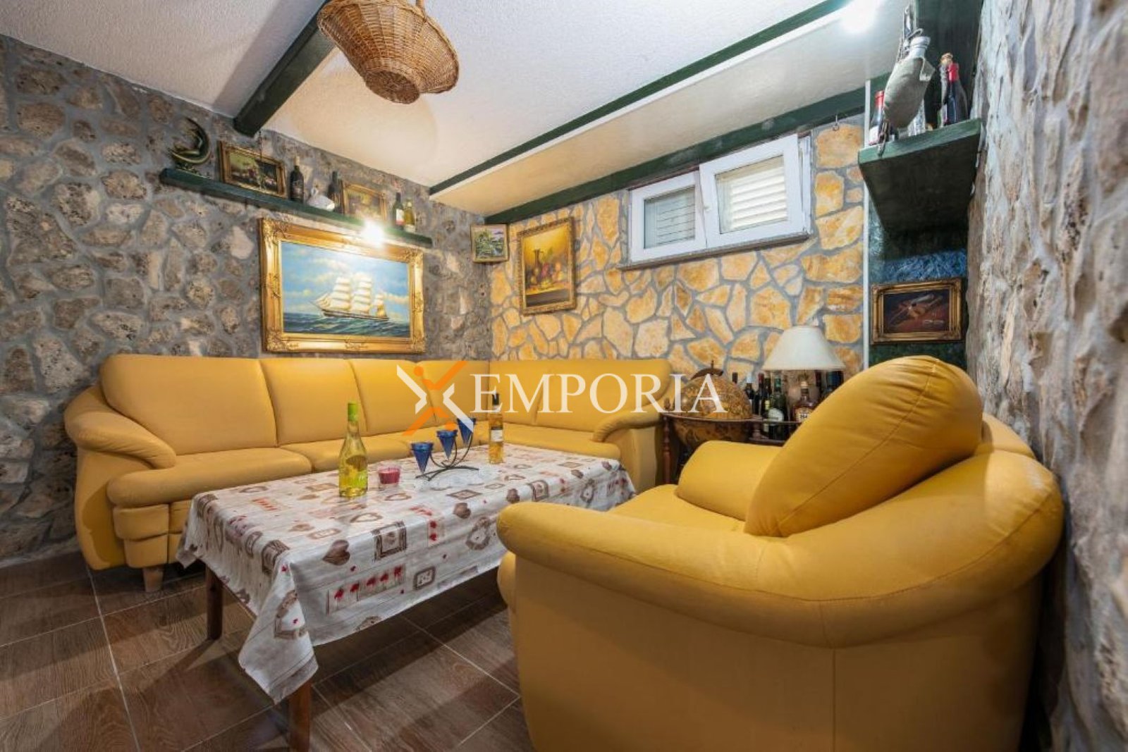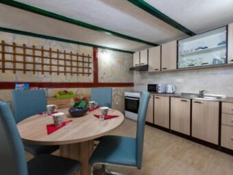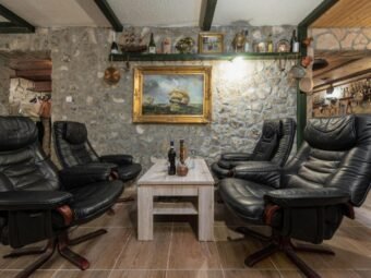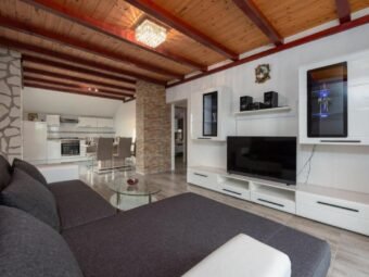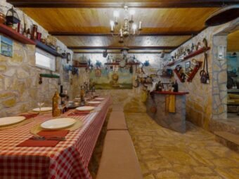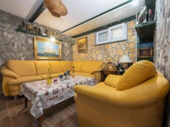 Nekretnina se prodaje namještena. Grijanje je riješeno peći na drva na prvom katu, dok su klima uređaji postavljeni u svim stanovima i u obje manje kuće, ukupno pet jedinica. Kuća je građena od cigle, ima PVC i aluminijsku stolariju s aluminijskim griljama te dimnjak. Podovi su obloženi pločicama i laminatom, a krov je kosi. Na raspolaganju su dva vanjska roštilja, jedan u dvorištu i jedan u konobi u podrumu.