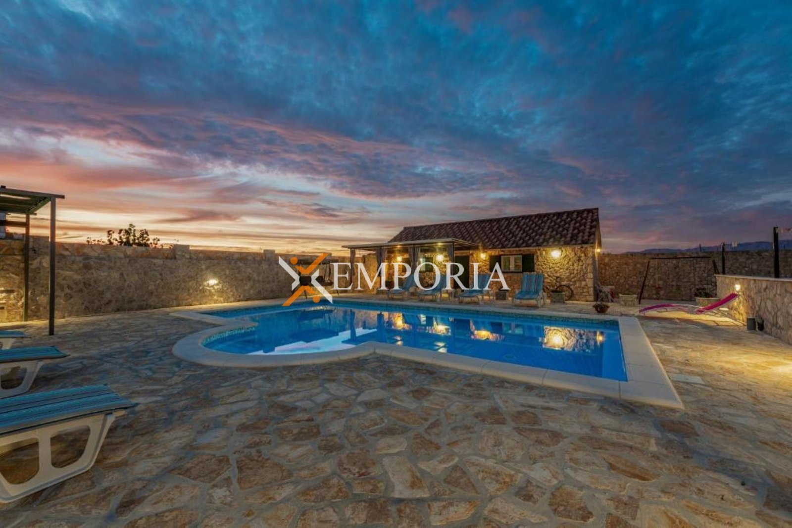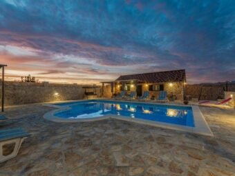 Kuća je izgrađena 1987. godine, a kompletna renovacija provedena je 2021. godine, pri čemu je u uređenje kuće i dvorišta ugrađeno oko 4.000 m² kamena. Ova nekretnina predstavlja iznimnu priliku za one koji traže veliku i funkcionalnu kuću s bazenom, dodatnim apartmanima i prostranom okućnicom u mirnom okruženju Ravnih kotara.
