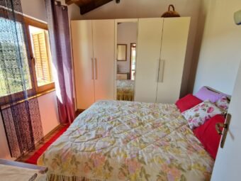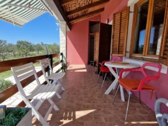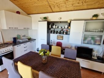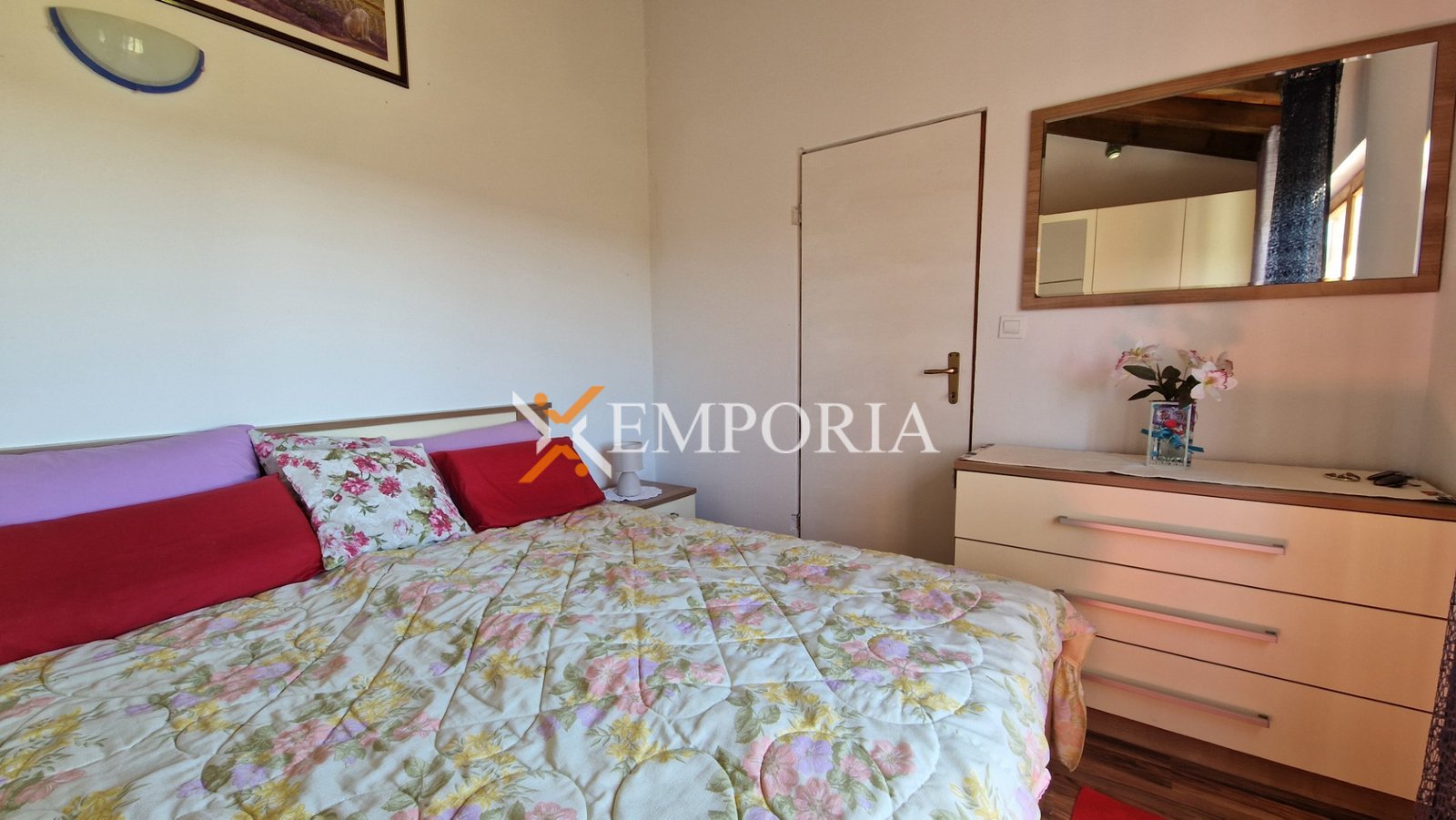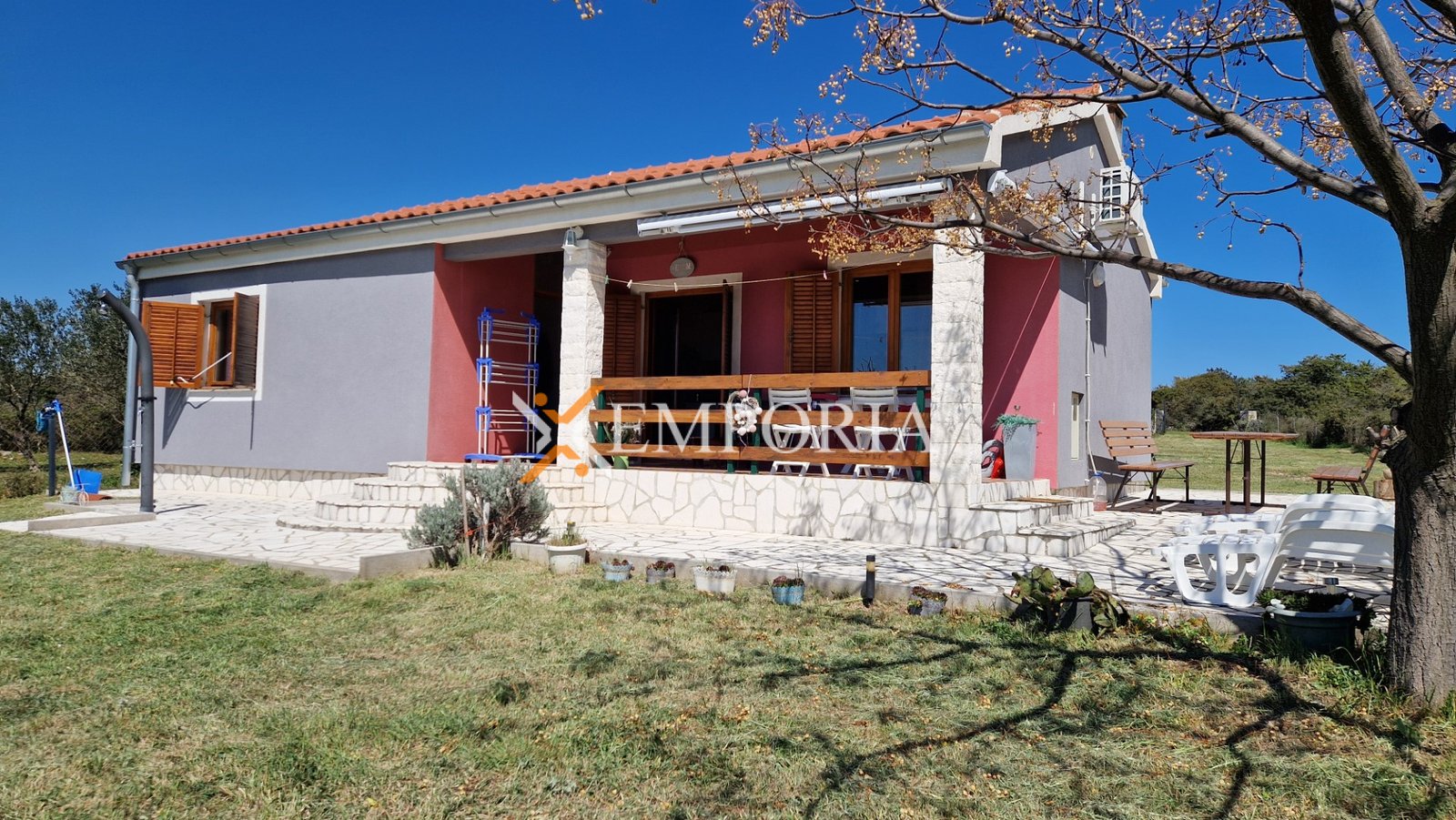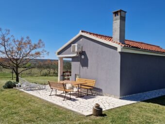 Kuća ima dimnjak i vanjski tuš. Podne obloge čine pločice i laminat.