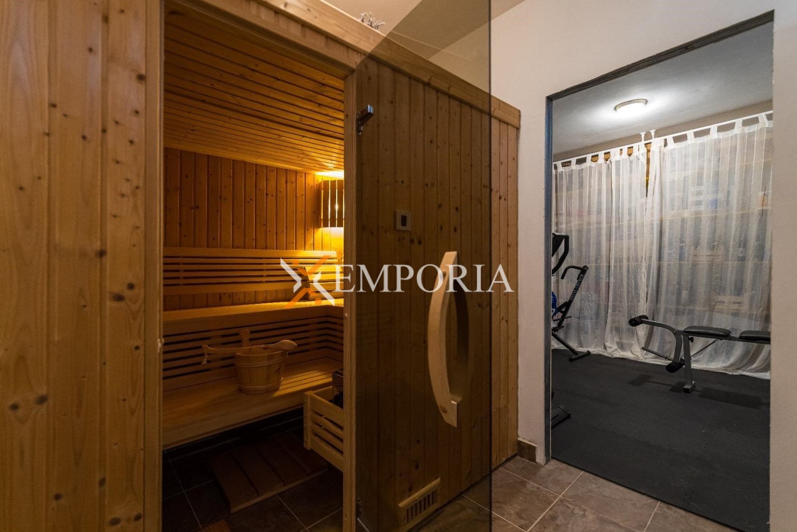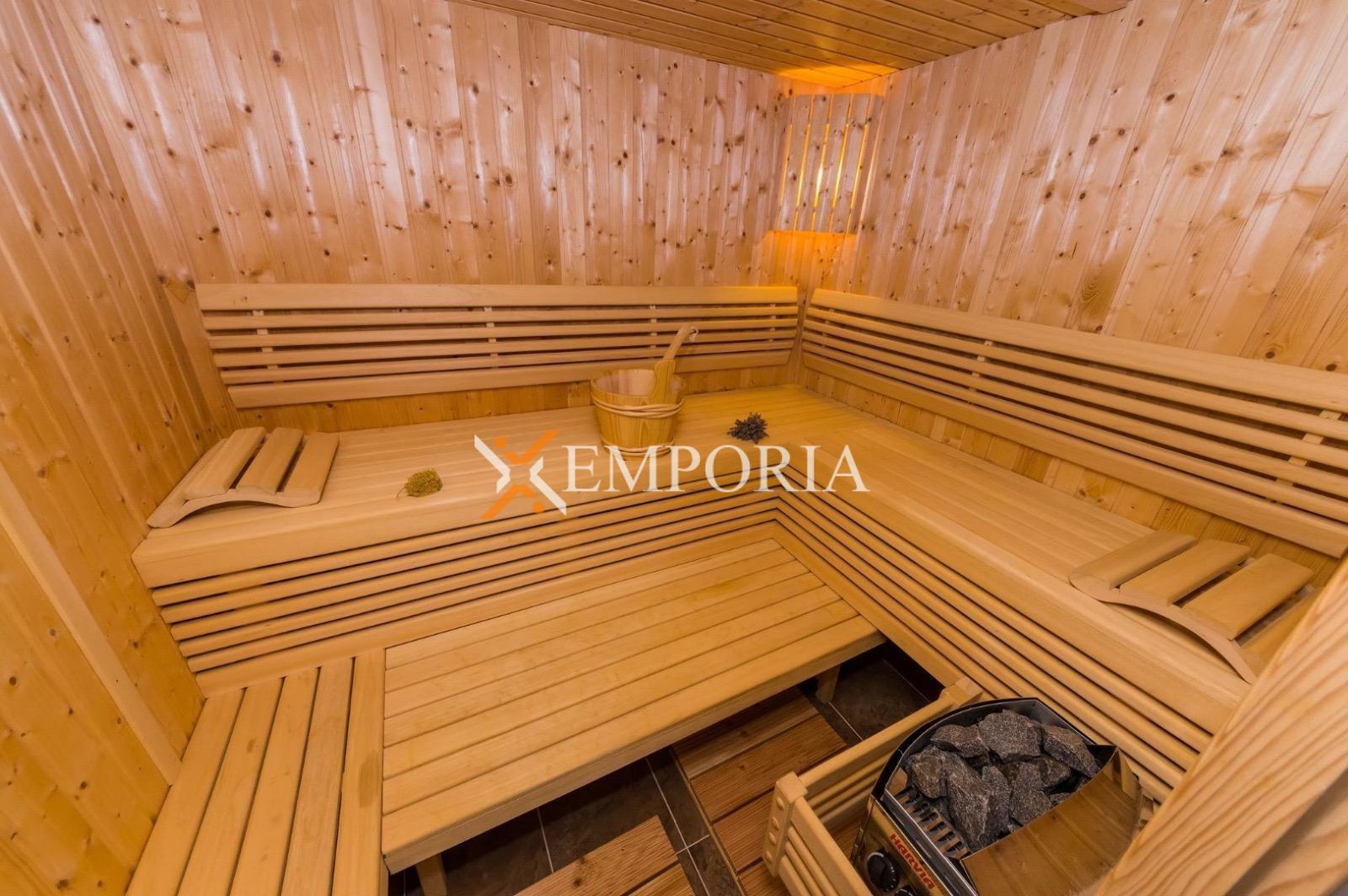Kuća ima dimnjak, a podne obloge čine pločice i laminat. U dvorištu se nalazi vanjski roštilj. Dodatno, kuća ima i saunu, što pruža višu razinu komfora i opuštanja.
