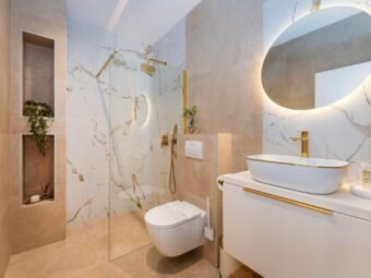 Grijanje je omogućeno putem peći na pelete u dnevnom boravku, dok je centralno grijanje putem radijatora provedeno u svim prostorijama. U kupaonicama je dodatno postavljeno i podno grijanje na struju.