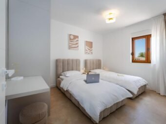 Ugrađena su četiri klima uređaja u dnevnom boravku i spavaćim sobama. Gradnja je izvedena ciglenim termo blokom. Ugrađena je PVC stolarija s roletama, električnim roletama i komarnicima. Fasada je izolirana stiroporom debljine 10 cm. Podne obloge čine pločice.