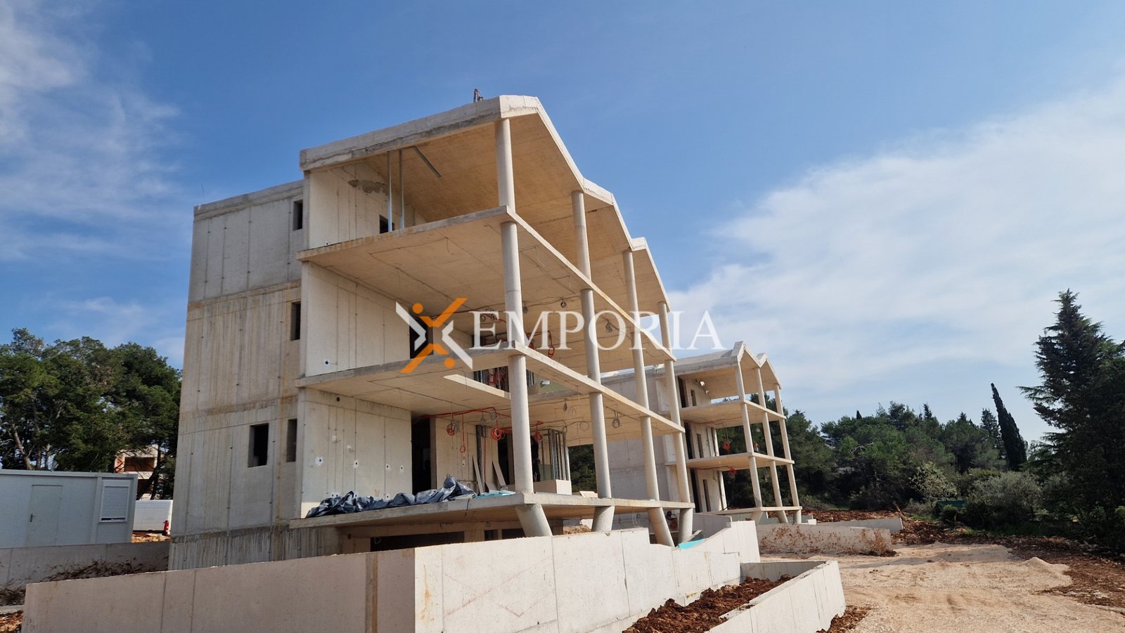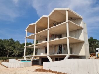 Gradnja betonskim zidom i ciglenim termo blokom. Podne obloge su pločice i parket. Na fasadu se stavlja stiropor debljine 8 cm kao termoizolacija. Prozori su aluminijski s komarnicima i brisolejima. U cijelom stanu se postavlja podno grijanje na vodu putem dizalica topline. Prostori su klimatizirani preko stropnih jedinica, također putem dizalica topline. Nadalje, ulazna vrata stana su protuprovalna i protupožarna.