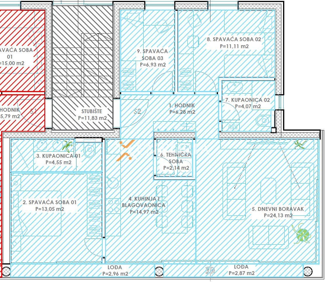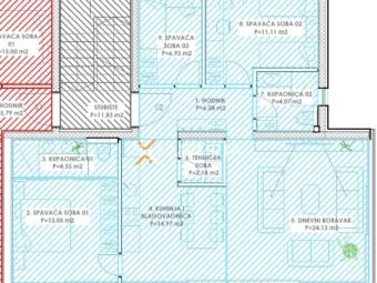 Ukupna neto površina stana sa svim pripacima iznosi 120,70 m2.