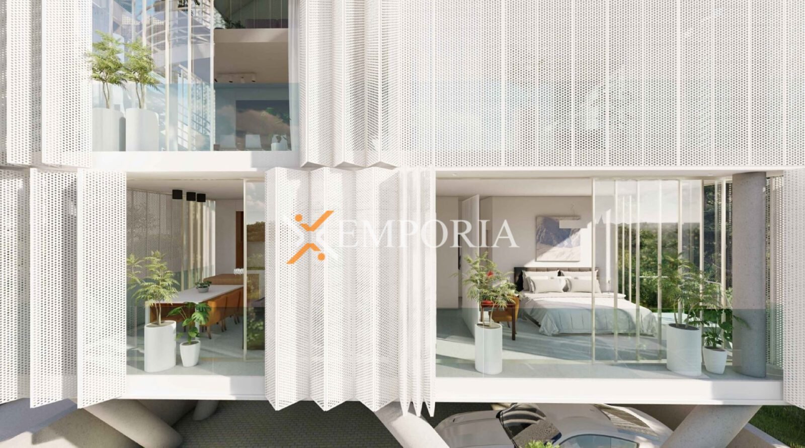 Gradnja betonskim zidom i ciglenim termo blokom. Podne obloge su pločice i parket. Na fasadu se stavlja stiropor debljine 8 cm kao termoizolacija. Prozori su aluminijski s komarnicima i brisolejima. U cijelom stanu se postavlja podno grijanje na vodu putem dizalica topline. Prostori su klimatizirani preko stropnih jedinica, također putem dizalica topline. Nadalje, ulazna vrata stana su protuprovalna i protupožarna.