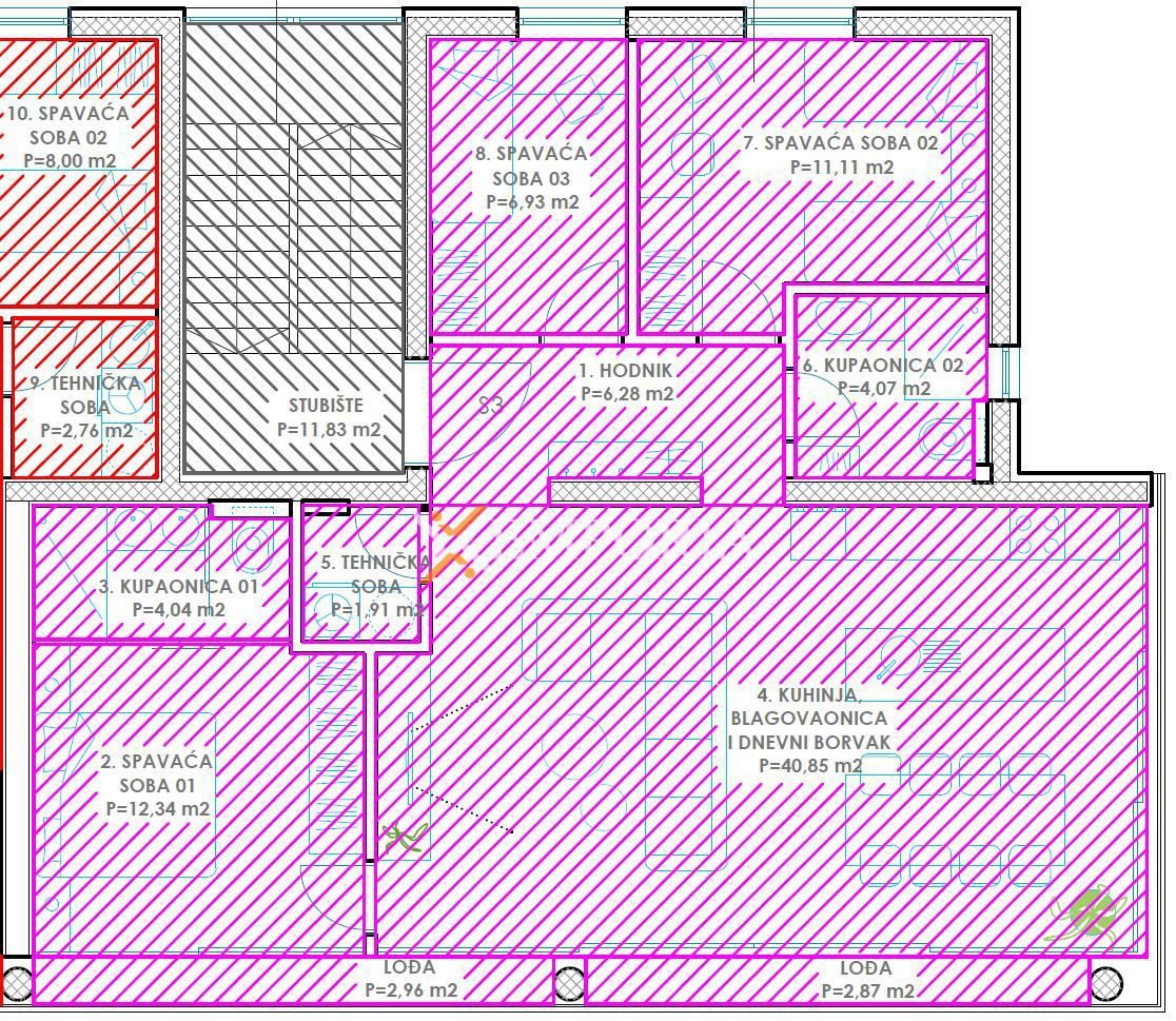 Ukupna neto površina stana sa svim pripacima iznosi 108,16 m2.