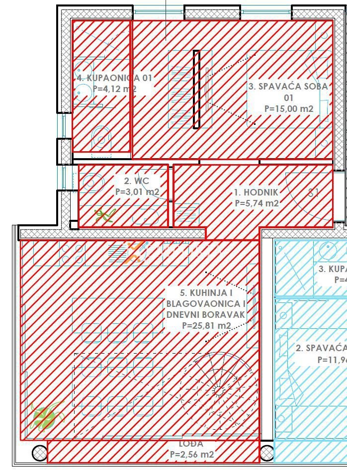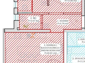 Ukupna neto površina stana sa svim pripacima iznosi 115,72 m2.