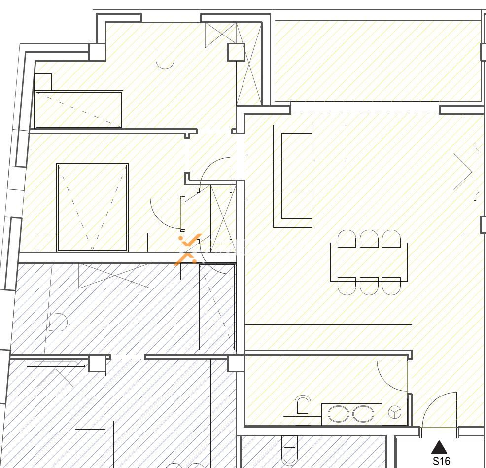 Ovo je penthouse stan na trećem katu s oznakom S16. Tlocrtno se sastoji od hodnika, 2 spavaće sobe, kupaonice, kuhinje s blagovaonicom i dnevnim boravkom te loggie. Površina opisanog je 72,28 m2. Uz stan pripada i krovna terasa od 101 m2, natkriveno parkirno mjesto u garaži, vanjsko parkirno mjesto i spremište u podrumu.