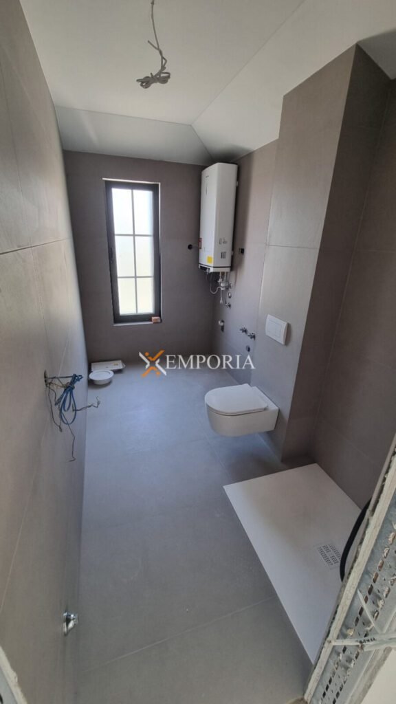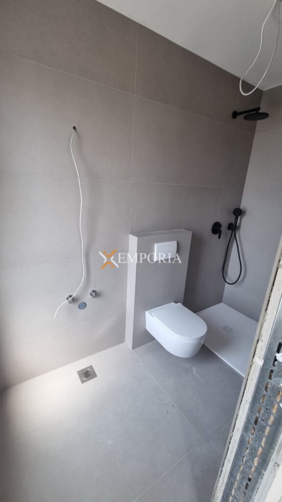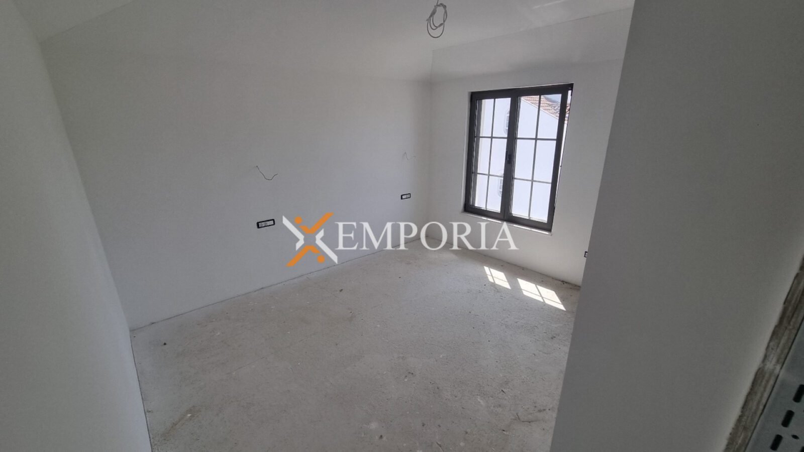Gradnja ciglenim termo blokom. Termoizolacija fasade s 10 cm stiropora. Podne obloge su pločice i parket. Prozori s komarnicima i troslojnim staklom. Spavaće sobe i dnevni boravak su klimatizirani. Predviđeno je podno grijanje na struju u kupaonici, ali je moguće dogovoriti postavljanje i u cijelom stanu uz nadoplatu. Ulazna vrata su protuprovalna. Zgrada ima i dimnjak.