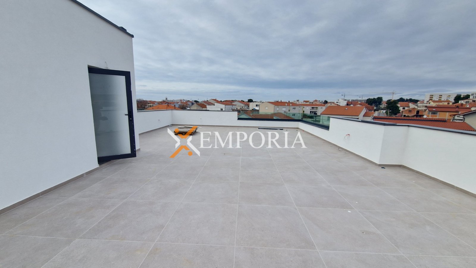 Raspored prostorija čine hodnik, dvije spavaće sobe, spavaća soba s kupaonicom, kupaonica, WC, kuhinja s blagovaonicom i dnevnim boravkom te lođa (95,30 m2 neto). Iz stubišta se ide na krovnu terasu površine 106,63 m2. Neto korisna površina opisanih prostorija iznosi 121,96 m2.