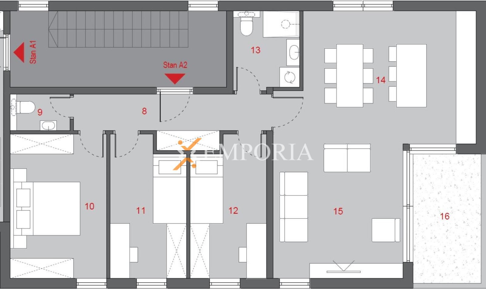 Prodaje se stan u novogradnji u Zadru, na Crvenim kućama. Radi se o stanu na 2. katu moderne stambene zgrade koja će biti useljiva do kraja 2026. godine.