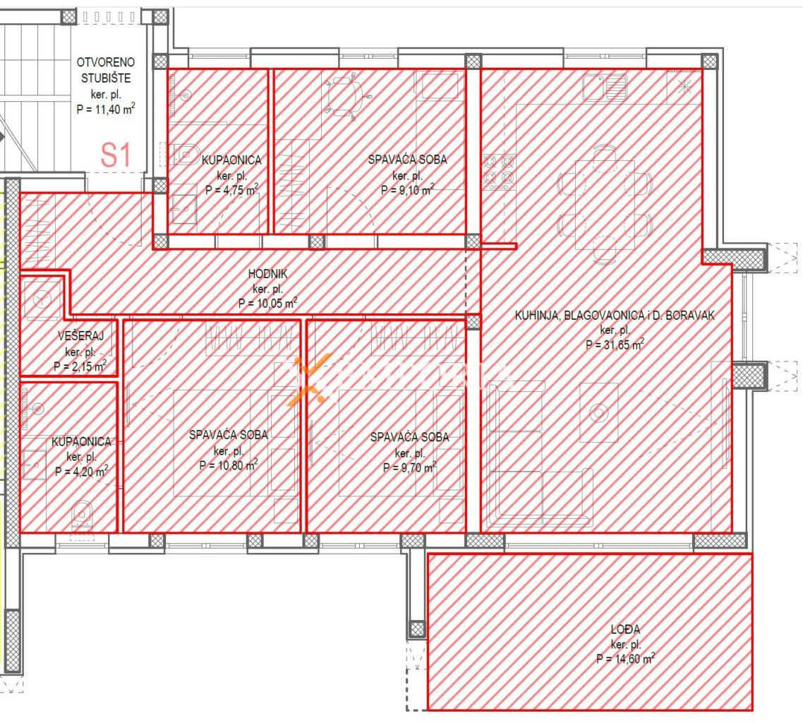 Stan se sastoji od hodnika, dvije spavaće sobe, dodatne spavaće sobe s vlastitom kupaonicom, dodatne kupaonice, praonice, te kuhinje s blagovaonicom i dnevnim boravkom. Iz dnevnog dijela izlazi se na lođu s koje se pruža odličan pogled na more.