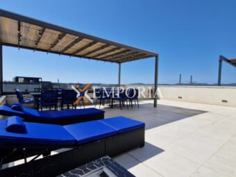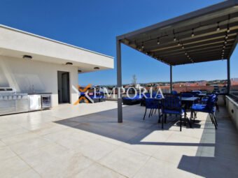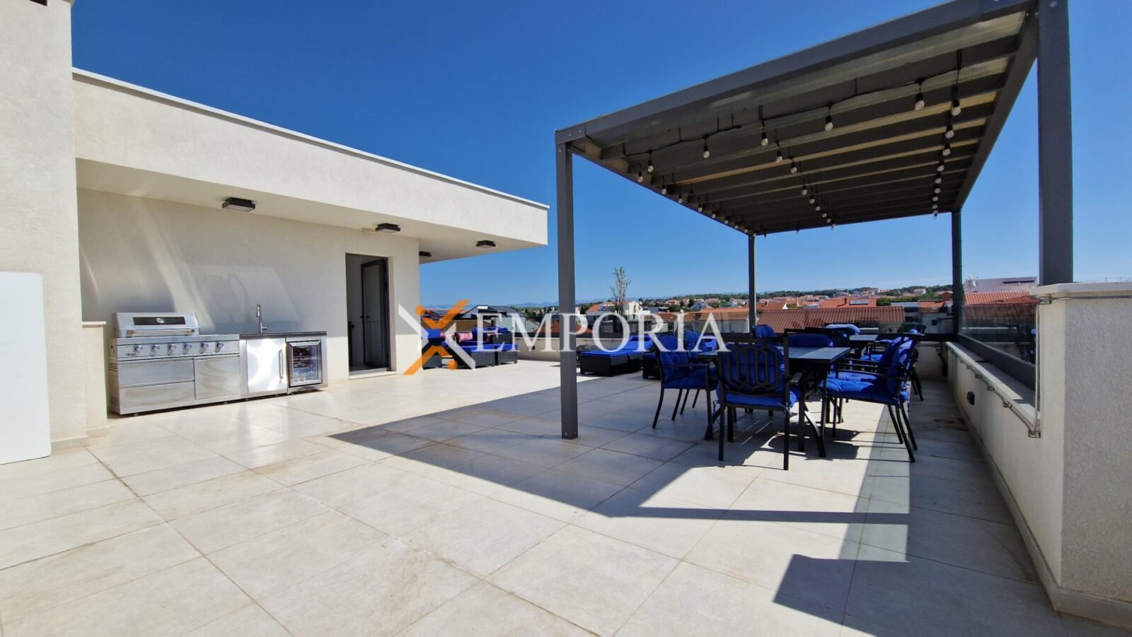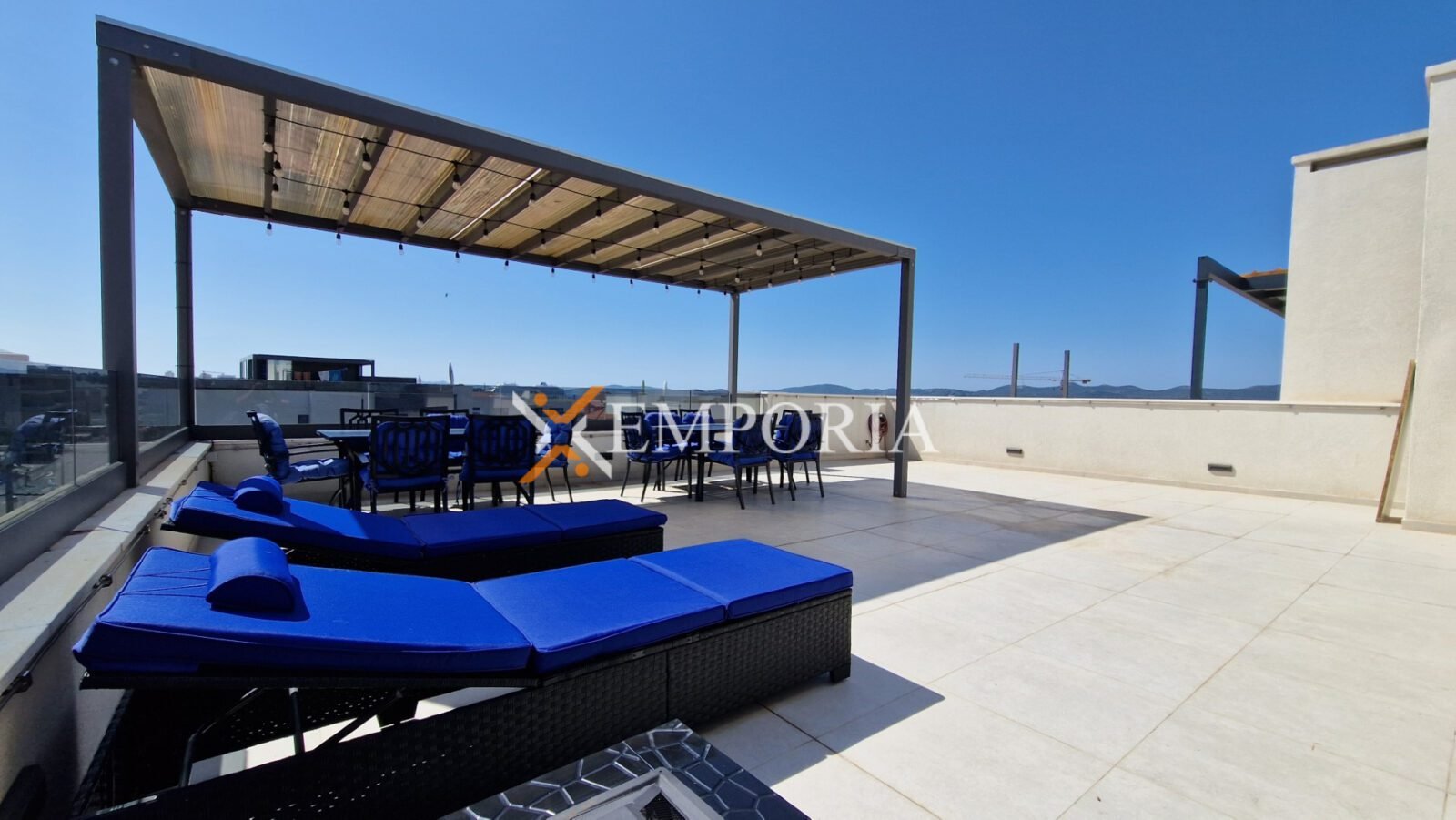 Na prodaju je potpuno opremljen stan s velikom krovnom terasom, smješten na atraktivnoj lokaciji u Zadru – Borik. Stan se nalazi na drugom katu stambene zgrade s liftom, udaljenoj svega 340 m od mora i 2,1 km od centra grada. Ukupna neto površina sa svim pripadcima iznosi 106,75 m².