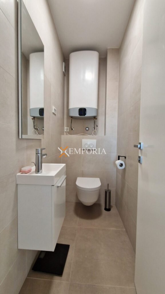 Stanu pripada spremište u podrumu površine 5,75 m² (neto 2,88 m²), jedno vanjsko parkirno mjesto te jedno parkirno mjesto u garaži. Zgrada je spojena na kanalizaciju.