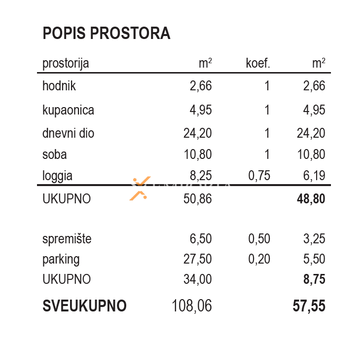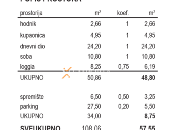 Na prodaju je moderan stan u Zadru, smješten u atraktivnom naselju Borik, udaljen 590 m od mora i 2,5 km od centra grada. Stan se nalazi na prvom katu novogradnje. Ukupna neto površina s pripacima iznosi 57,55 m², dok stambeni dio zauzima 48,80 m². Dodatnu vrijednost ovoj nekretnini daje pogled na more, što stan čini izvrsnim izborom za život ili investiciju. Raspored prostorija uključuje hodnik, spavaću sobu, kupaonicu te kuhinju povezanu s blagovaonicom i dnevnim boravkom, iz kojeg se izlazi na loggiu. Stanu pripada spremište površine 3,25 m² te dva parkirna mjesta.