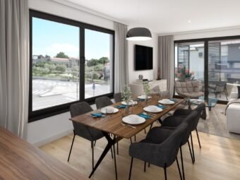 Na prodaju je moderan stan u novogradnji s liftom, smješten u mirnom dijelu Zadra – Belafuži, svega 1,2 km od mora i 1,9 km od centra grada.