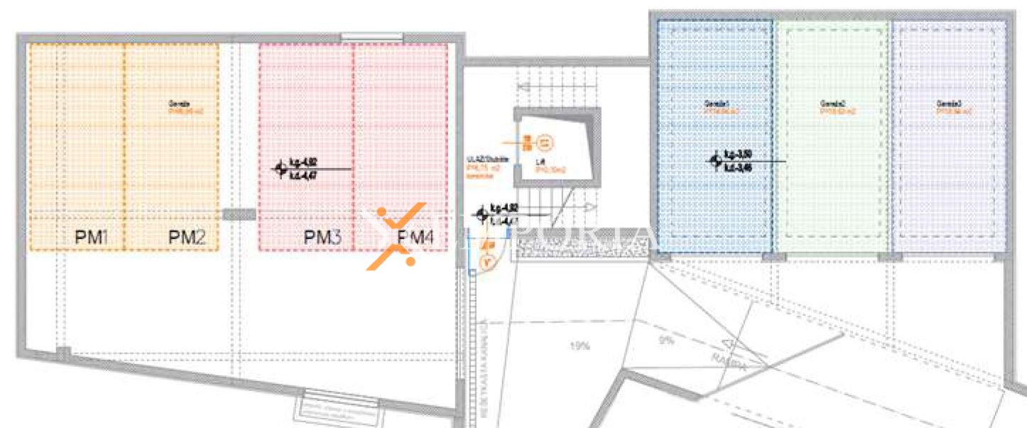 Stanu pripadaju dva garažna parkirna mjesta, a ukupna neto površina s pripacima iznosi 81,70 m².