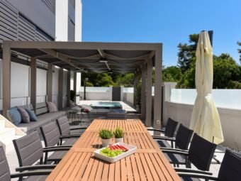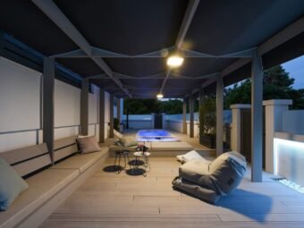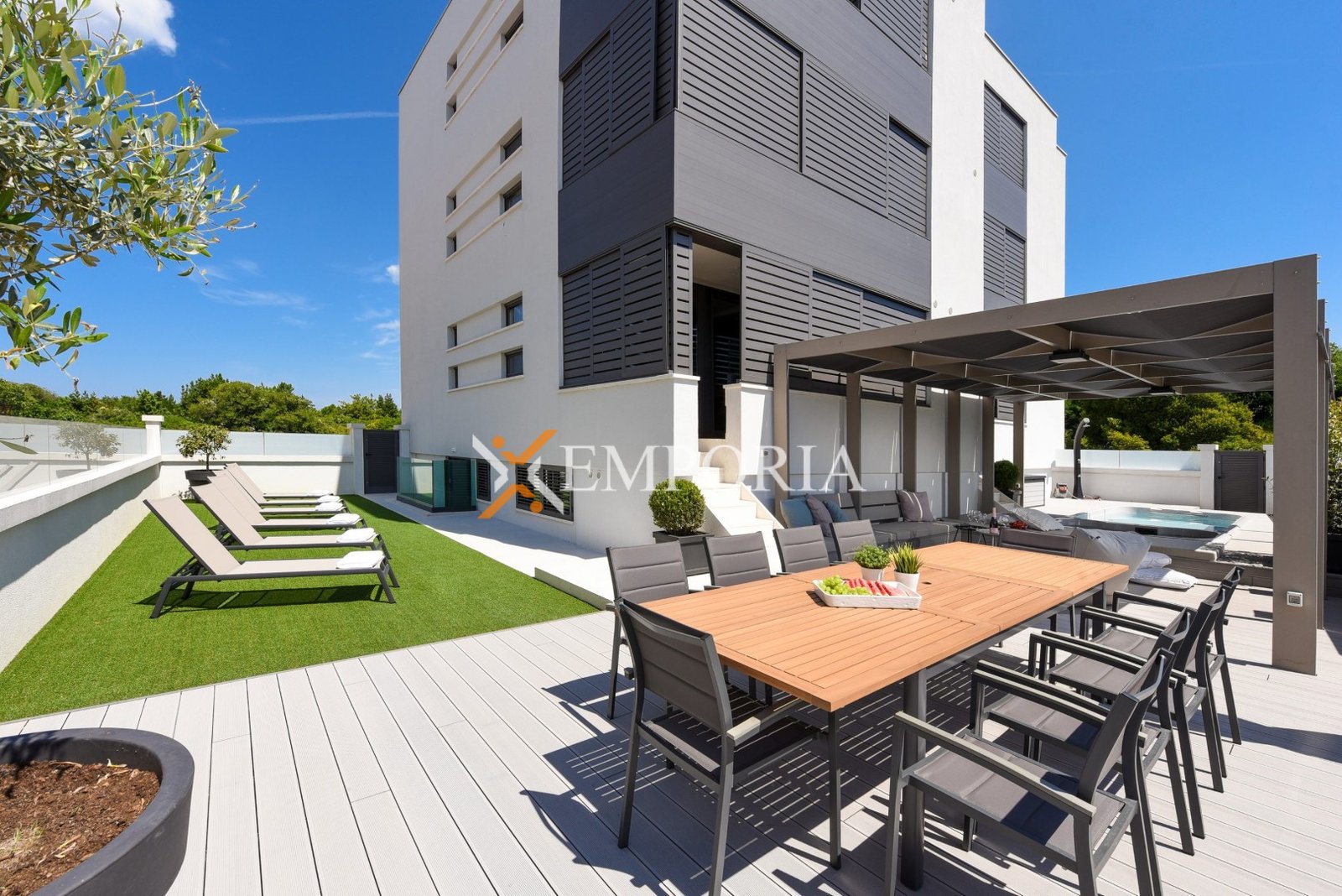 Zajednički nude prekrasan vrt površine 172,83 m² te bazen i jacuzzi natkriven pergolom, stvarajući ugodan prostor za opuštanje i boravak na otvorenom.