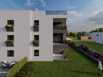 Na prodaju je moderan stan u novogradnji u Zadru, predio Vidikovac, smješten u prizemlju stambene zgrade s liftom. Nekretnina se nalazi 1,5 km od mora i 2,5 km od centra grada, što omogućuje mirno stanovanje uz brzu povezanost sa svim gradskim sadržajima.