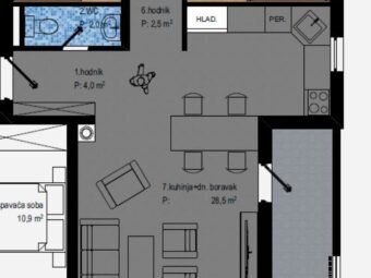 Zahvaljujući novogradnji, funkcionalnom rasporedu i atraktivnoj mikrolokaciji, ovaj stan predstavlja izvrsnu priliku za obiteljski život ili sigurnu investiciju u Zadru. Očekivani energetski certifikat je A, što znači visoku energetsku učinkovitost i niže troškove režija.
