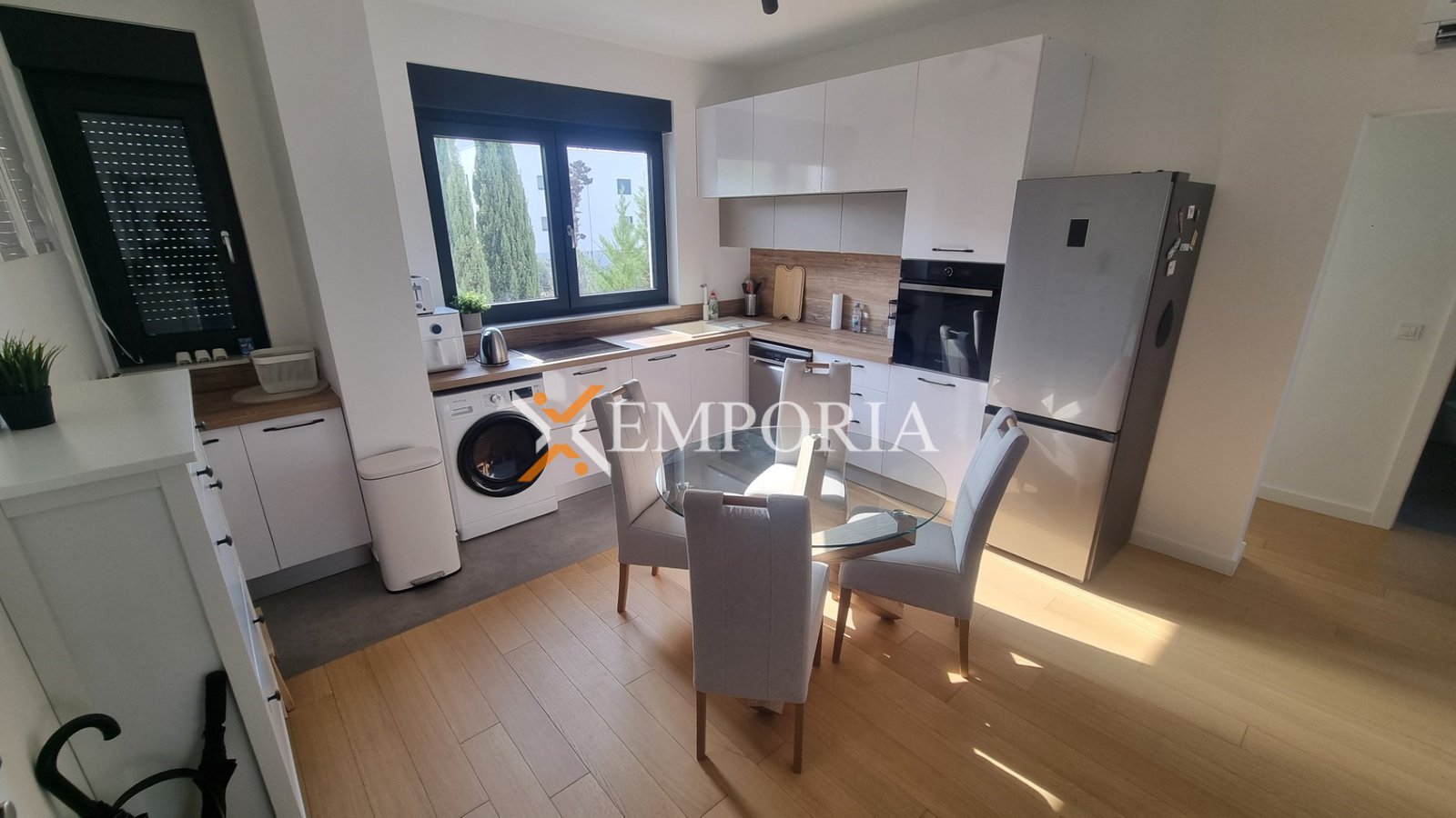Podovi su kombinacija parketa i pločica, a stan ima energetski certifikat A.